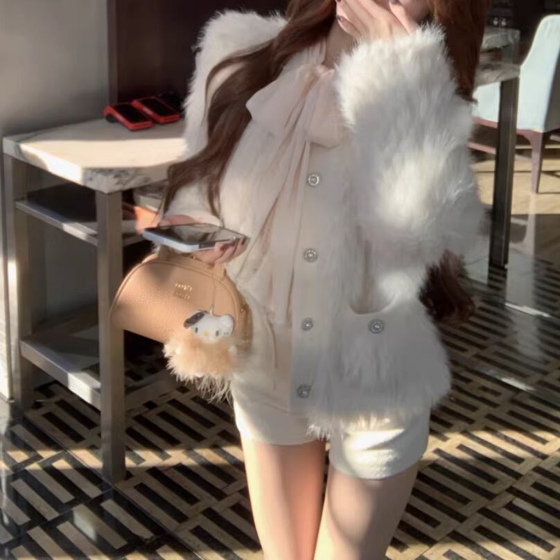 【2点セット】ショートジャケット+ファートリムティアードリボンキャミワンピ ・63097