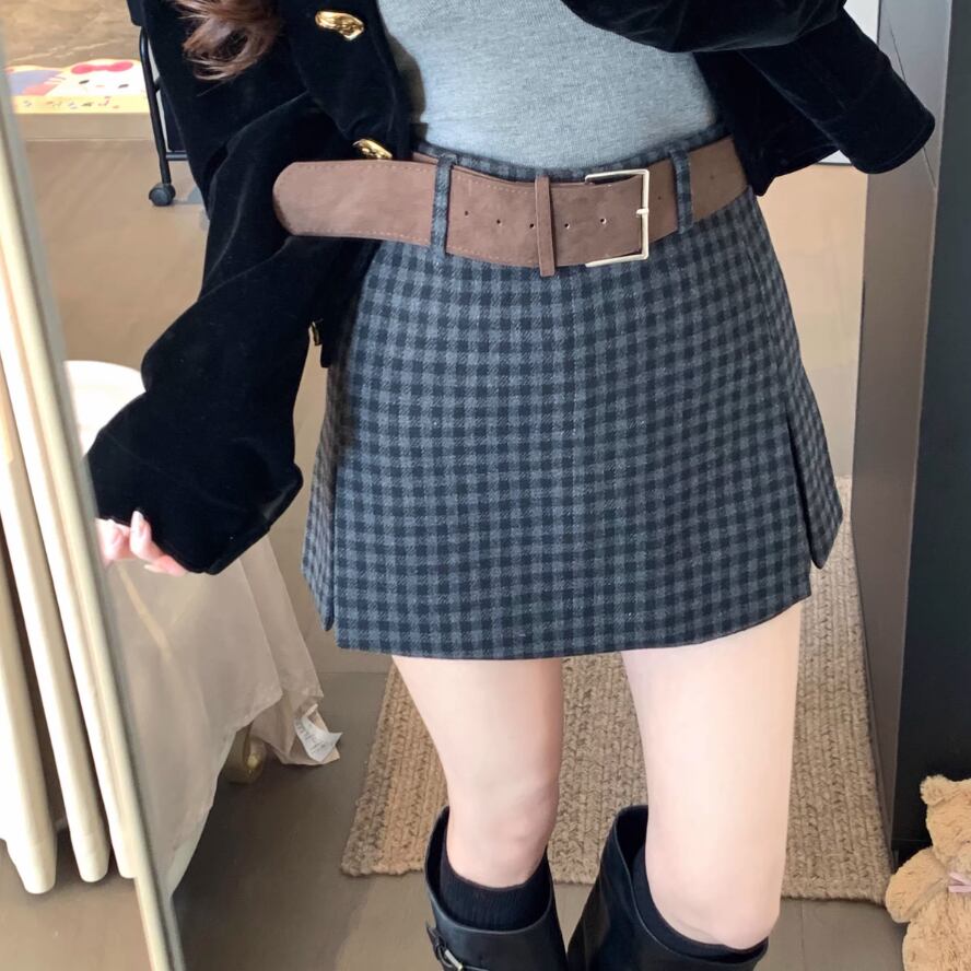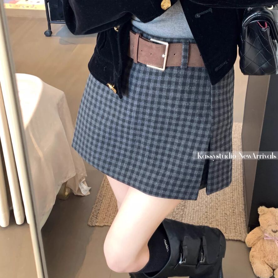 【2点セット】3色/ウールタッチスリットスカパン+ベルト ・74207