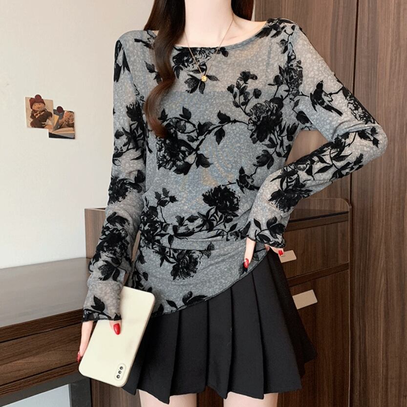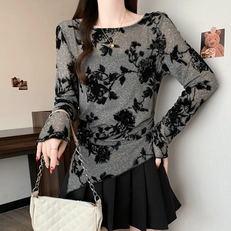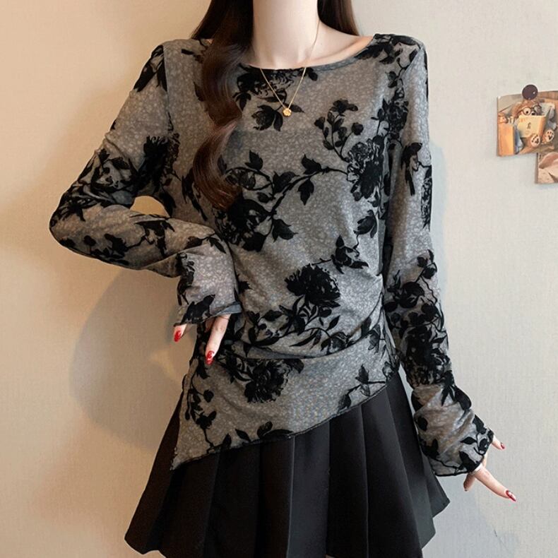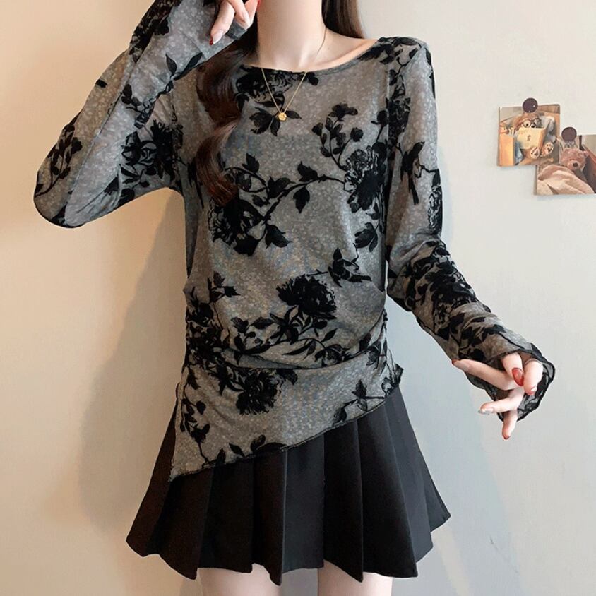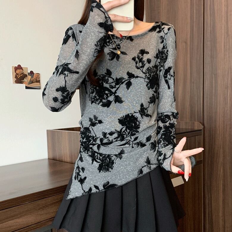レースカラーアシメボタンドッキングトップス ・71106