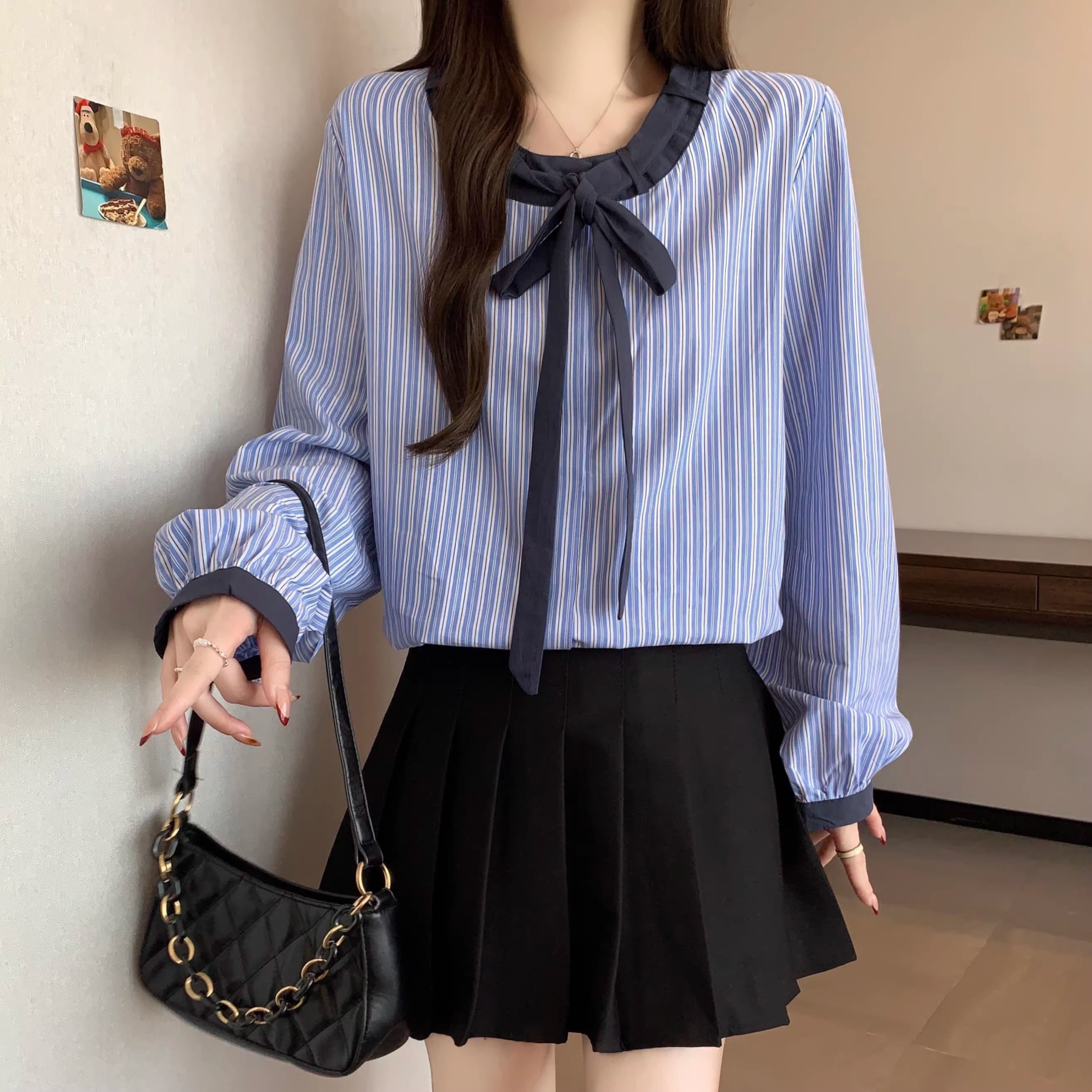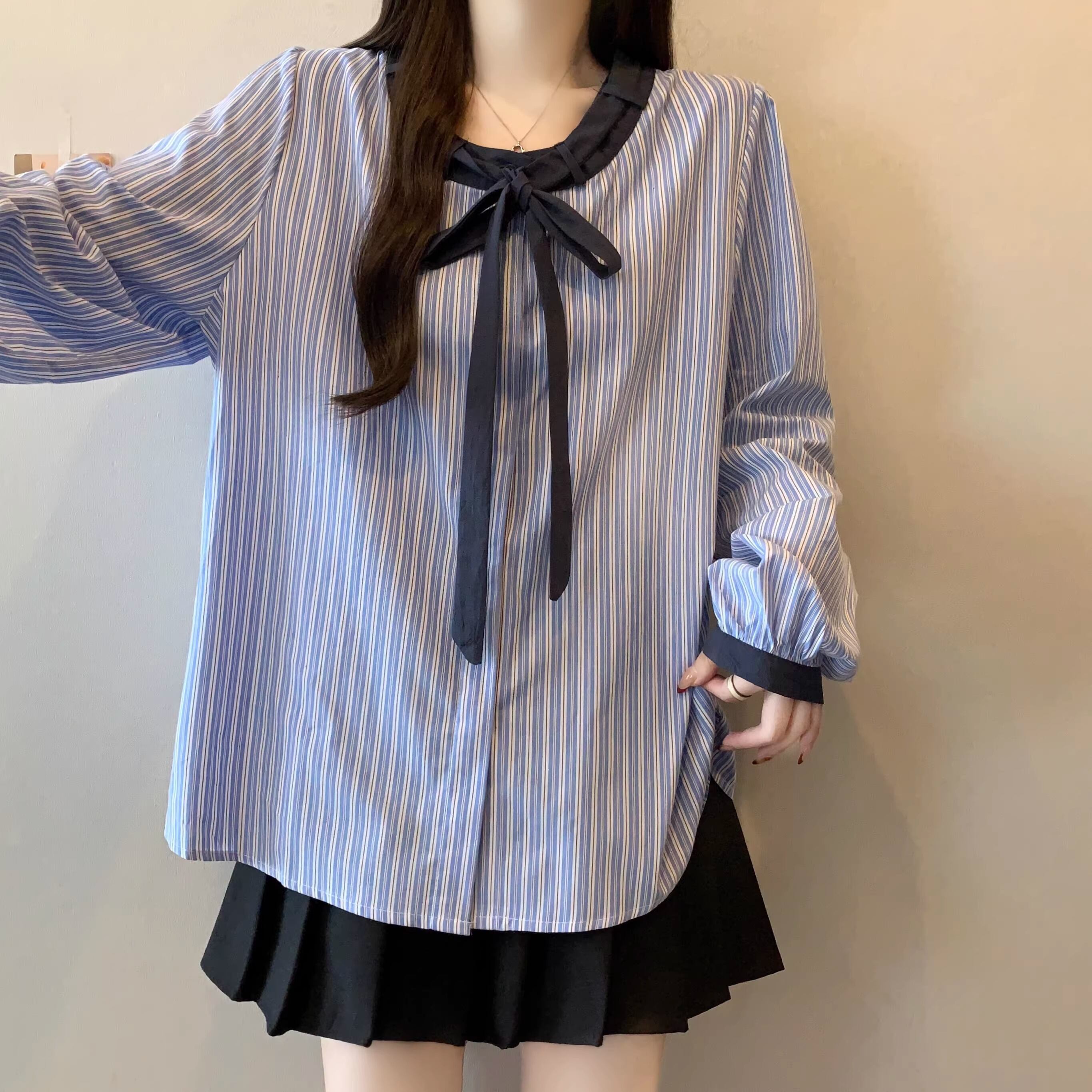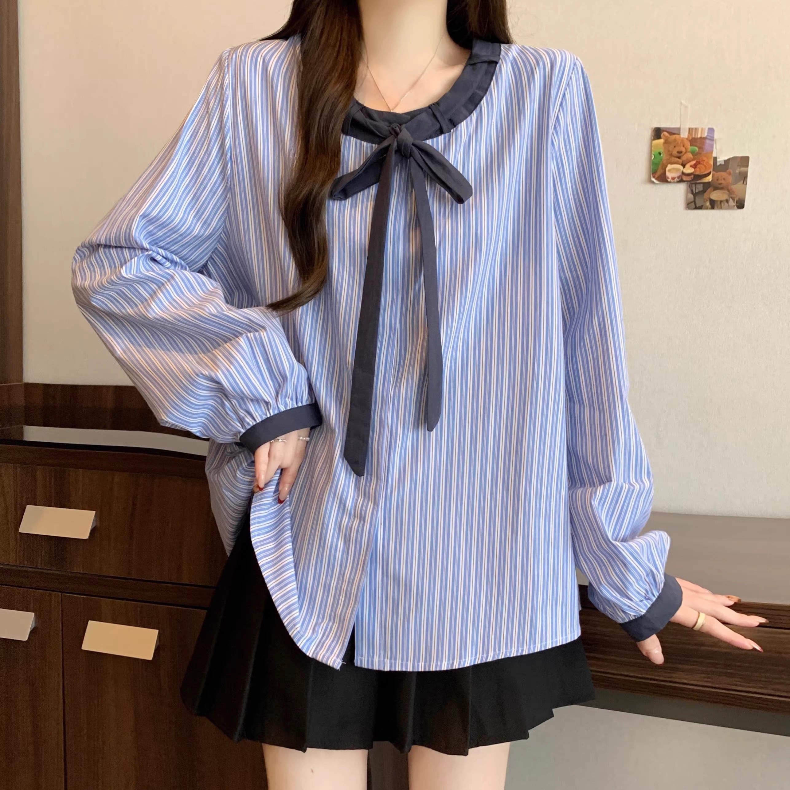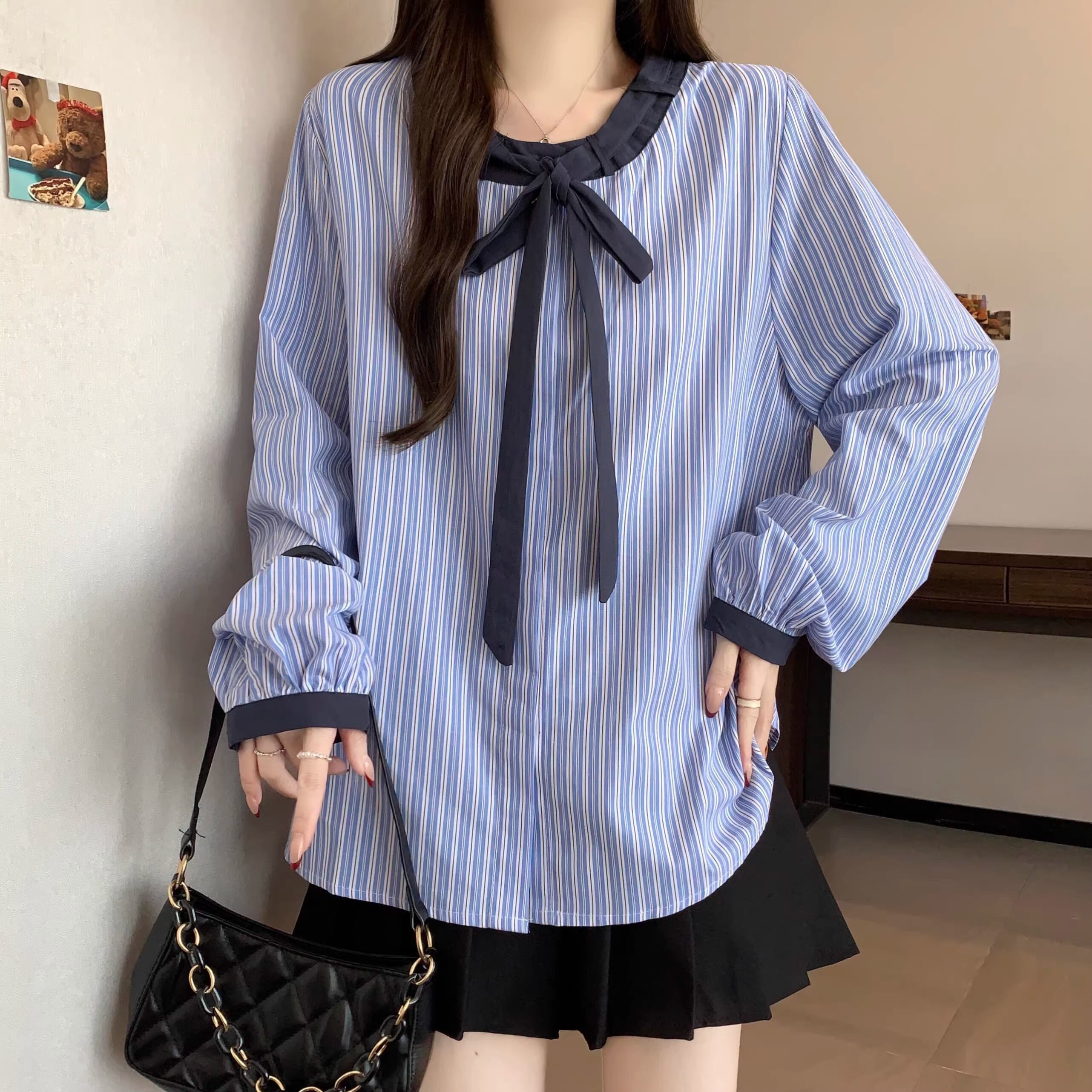 3色/ドロストリボンアシメデザインシャツ ・75363