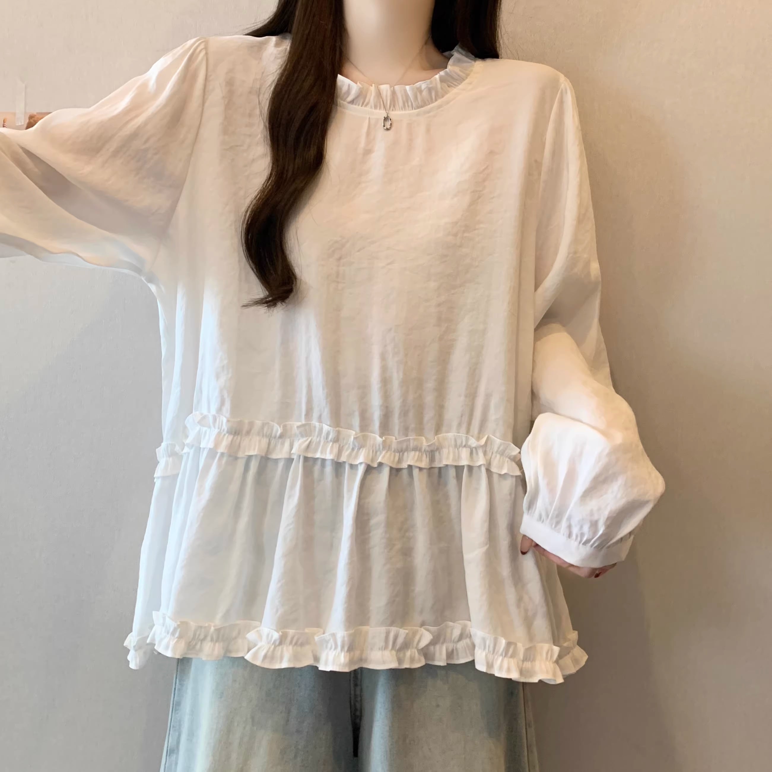 ▽Instagram「新作情報配信中」 フォローお願いいたします。 https://www.instagram.com/sucrier_closet/ ▼カラー ホワイト ▼サイズ [ Lサイズ ] 着丈64cm バスト110cm 肩幅46cm 袖丈55cm [ XLサイズ ] 着丈65cm バスト114cm 肩幅47cm 袖丈56cm [ 2XLサイズ ] 着丈66cm バスト118cm 肩幅48cm 袖丈57cm [ 3XLサイズ ] 着丈67cm バスト122cm 肩幅49cm 袖丈58cm [ 4XLサイズ ] 着丈68cm バスト126cm 肩幅50cm 袖丈59cm ※1-3cm程度の誤差がある場合がございます。予めご了承ください。 ▼シーズン 春,秋 ▼同じカテゴリの商品はこちら https://www.sucrier.jp/categories/1712762 ▽お支払い方法 ・クレジットカード決済 ・キャリア決済 (docomo/au/Softbank/Y!mobile) ・後払い決済 (商品お届け後コンビニ払いなど) ▽注意点 ※こちらの商品は決済から10日-3週間前後でのお届けとなります。 ※配送日時指定等に関しては、ご指定できないことご了承くださいませ。 ※できる限り早くお届けできるように手配させて頂きます。 ※検品はしておりますが、もし届いた商品に不備がありましたら、誠実に対応させていただきます。 商品ID:SC074763