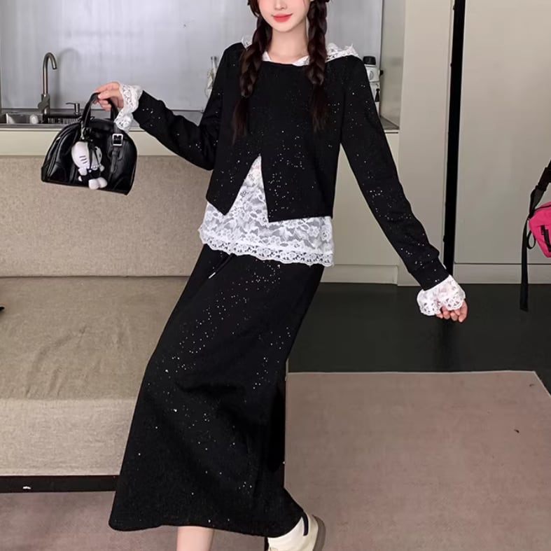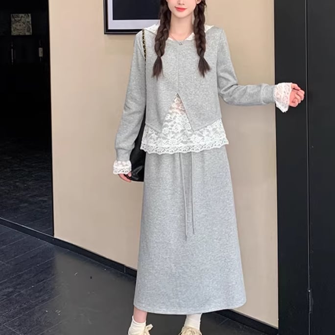 ▽Instagram「新作情報配信中」 フォローお願いいたします。 https://www.instagram.com/sucrier_closet/ ▼カラー グレー(画像2枚目) ブラック(画像3枚目) ▼サイズ [ Lサイズ ] トップス:着丈59cm バスト102cm 肩幅38.5cm 袖丈59cm スカート:着丈78cm ウエスト68cm ヒップ101cm [ XLサイズ ] トップス:着丈60cm バスト106cm 肩幅40cm 袖丈60cm スカート:着丈79cm ウエスト72cm ヒップ105cm [ 2XLサイズ ] トップス:着丈61cm バスト110cm 肩幅41.5cm 袖丈61cm スカート:着丈80cm ウエスト76cm ヒップ109cm [ 3XLサイズ ] トップス:着丈62cm バスト114cm 肩幅43cm 袖丈62cm スカート:着丈81cm ウエスト80cm ヒップ113cm [ 4XLサイズ ] トップス:着丈63cm バスト118cm 肩幅44.5cm 袖丈63cm スカート:着丈82cm ウエスト84cm ヒップ117cm ※1-3cm程度の誤差がある場合がございます。予めご了承ください。 ▼シーズン 春,秋 ▼同じカテゴリの商品はこちら https://www.sucrier.jp/categories/1737171 ▽お支払い方法 ・クレジットカード決済 ・キャリア決済 (docomo/au/Softbank/Y!mobile) ・後払い決済 (商品お届け後コンビニ払いなど) ▽注意点 ※こちらの商品は決済から10日-3週間前後でのお届けとなります。 ※配送日時指定等に関しては、ご指定できないことご了承くださいませ。 ※できる限り早くお届けできるように手配させて頂きます。 ※検品はしておりますが、もし届いた商品に不備がありましたら、誠実に対応させていただきます。 商品ID:SC074749