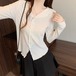 レースカラーアシメボタンドッキングトップス ・71106