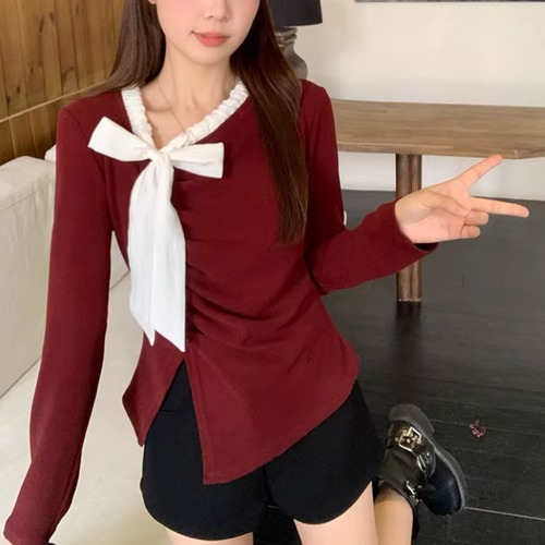 レースカラーアシメボタンドッキングトップス ・71106