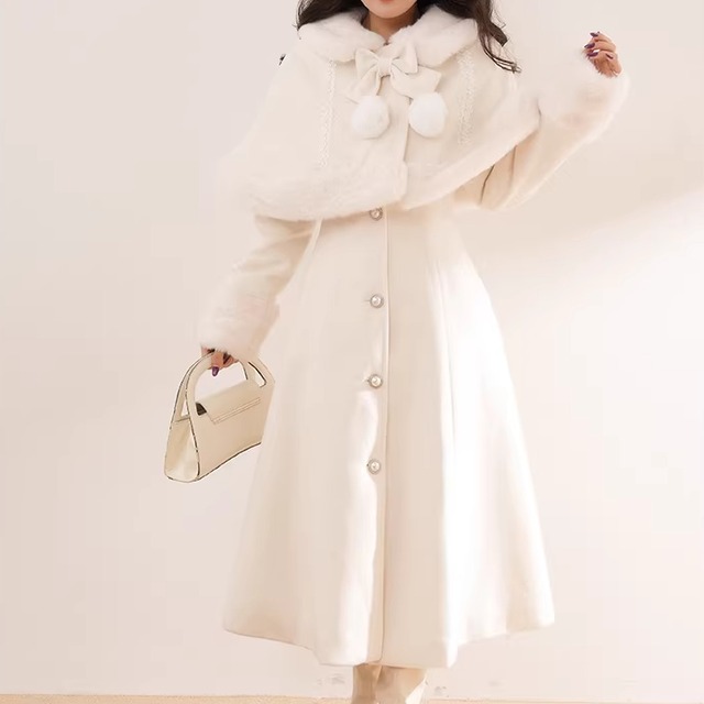 【2点セット】エコファーカラーコート+リボンガーリーケープ ・75033