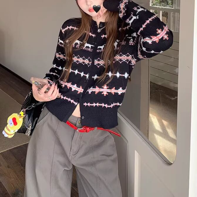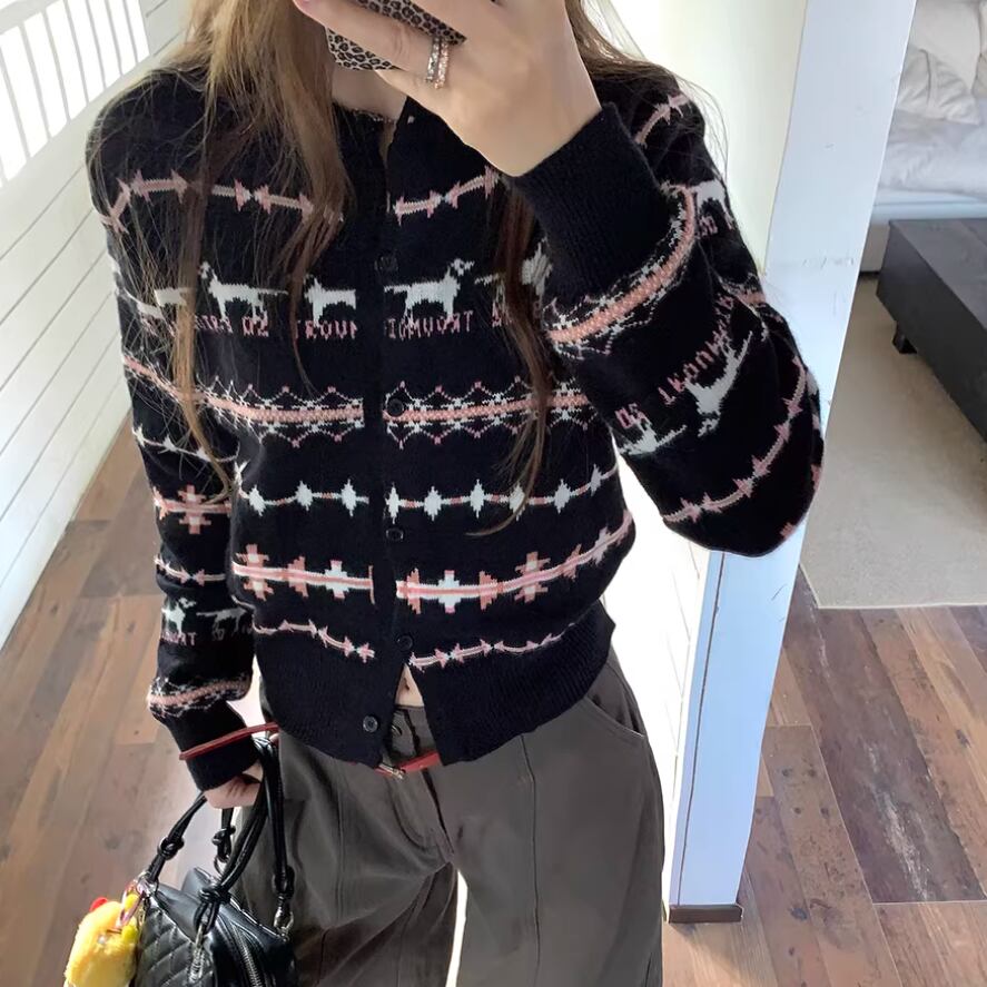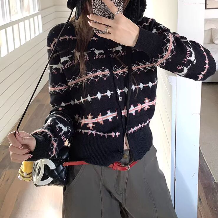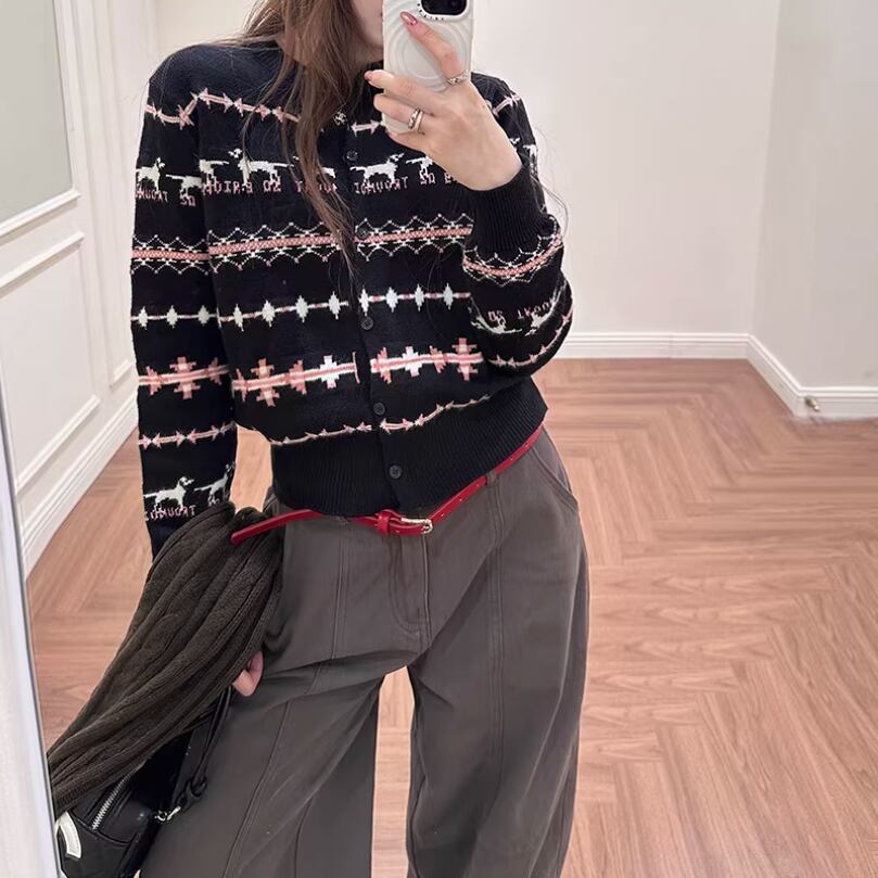 2色/ノルディック柄ポロカラーニットカーデ ・72764