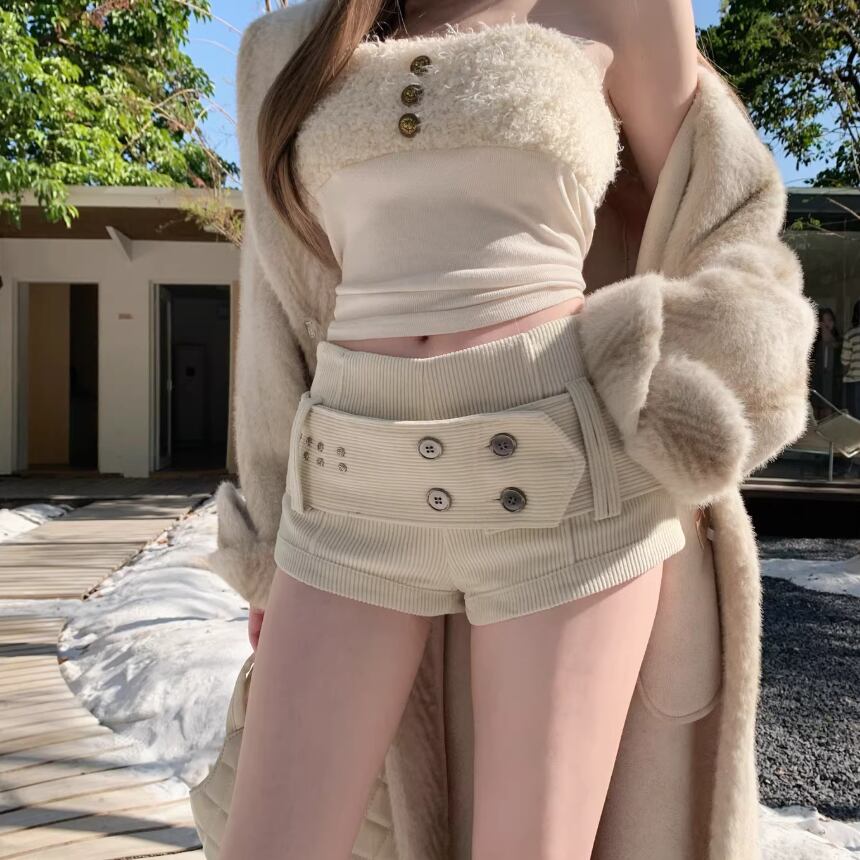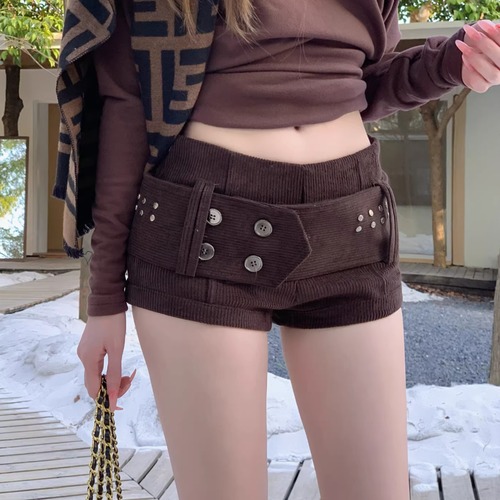 2色/ダブルボタンコーデュロイミニスカパン ・74825