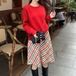 【2点セット】フリルリボンブラウス+チェック柄レースヘムスカート ・75250
