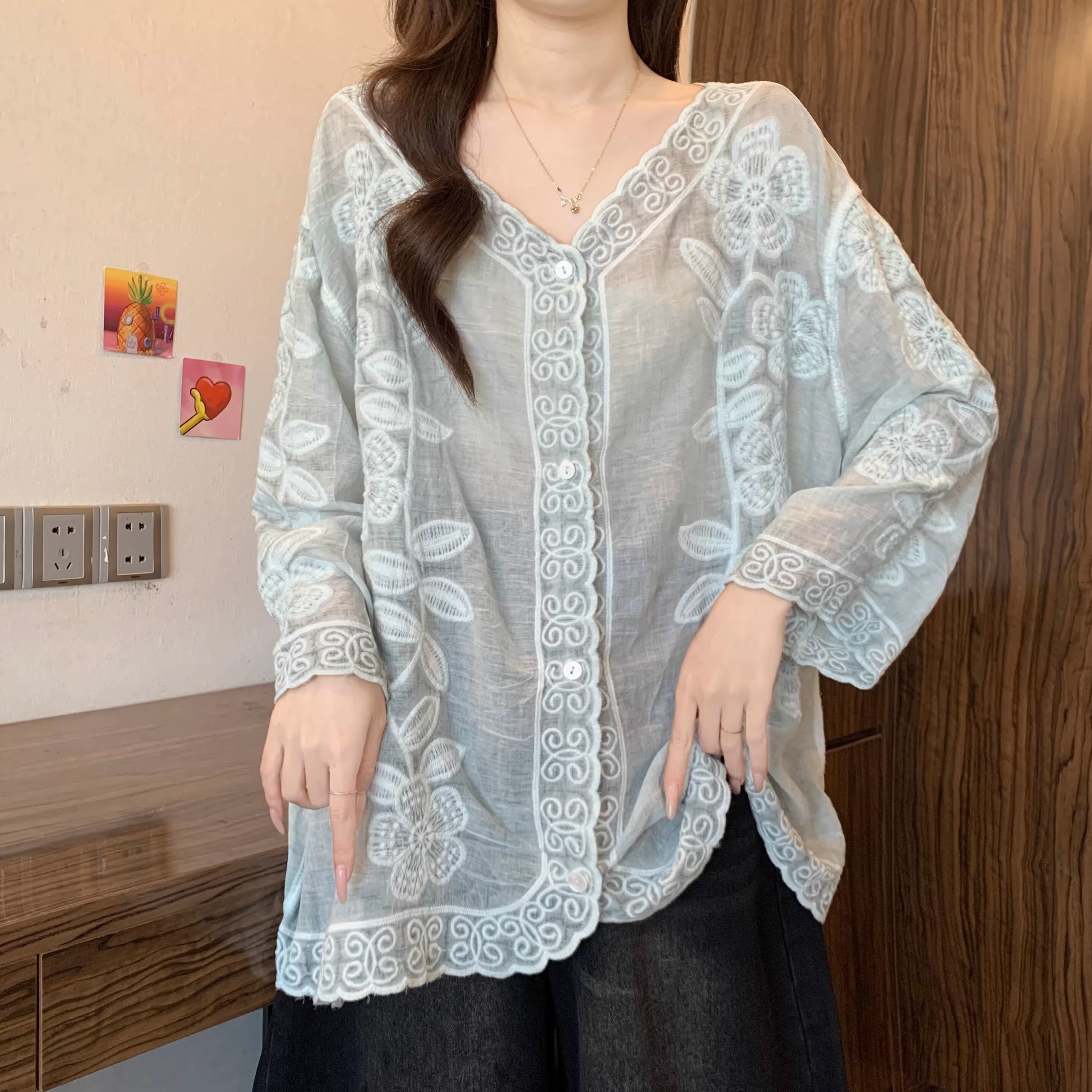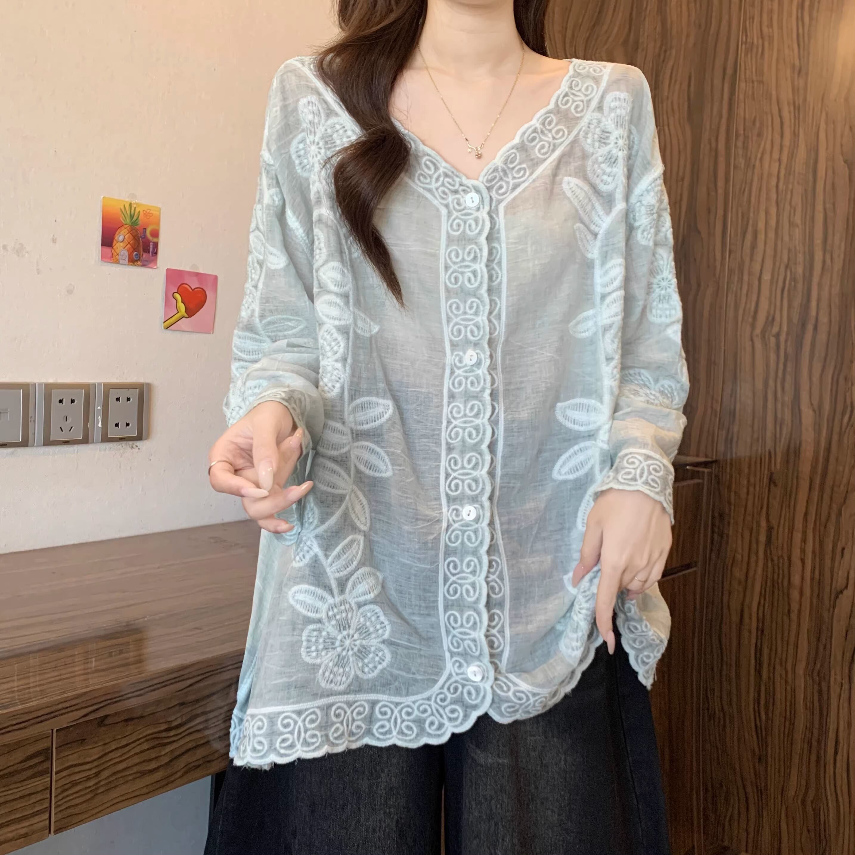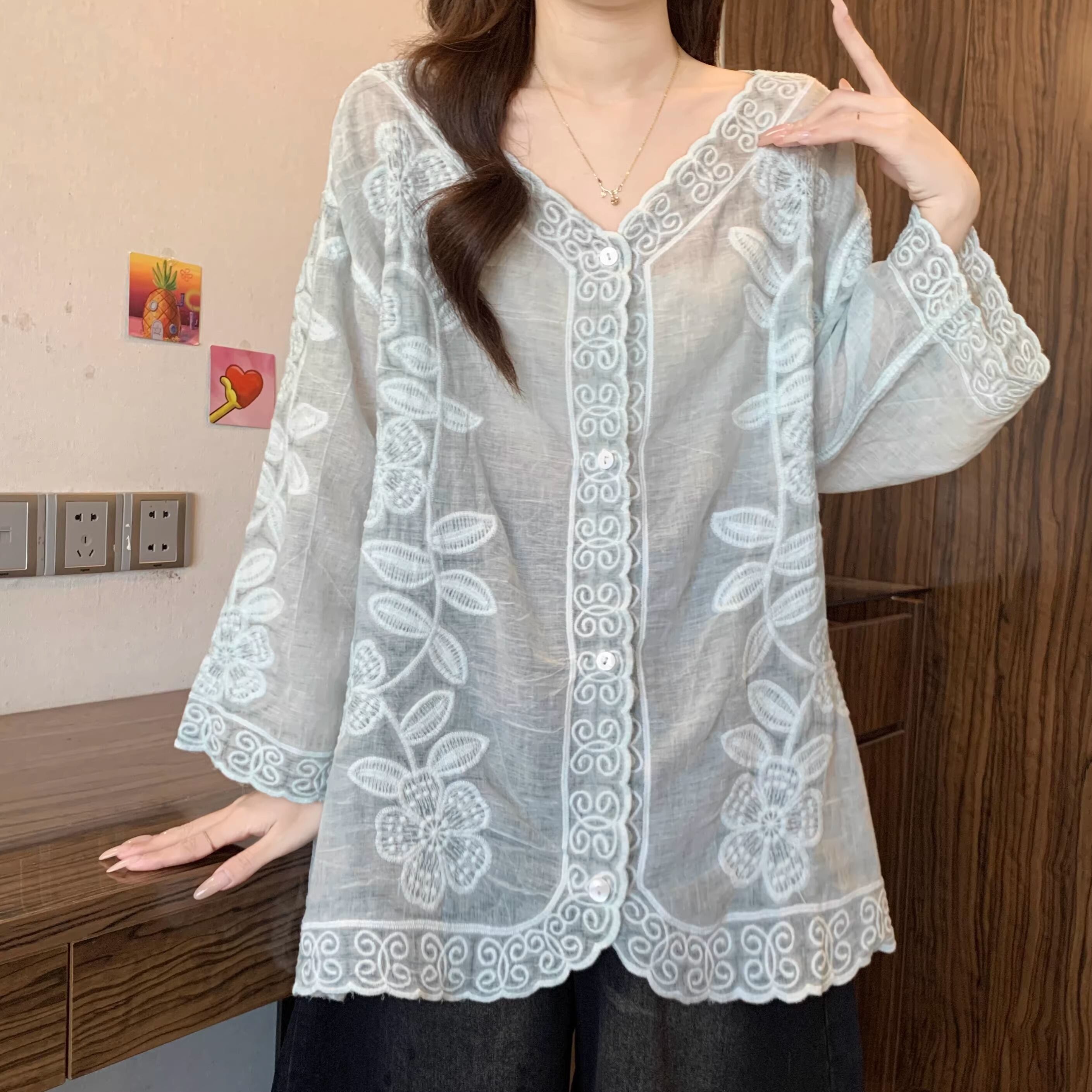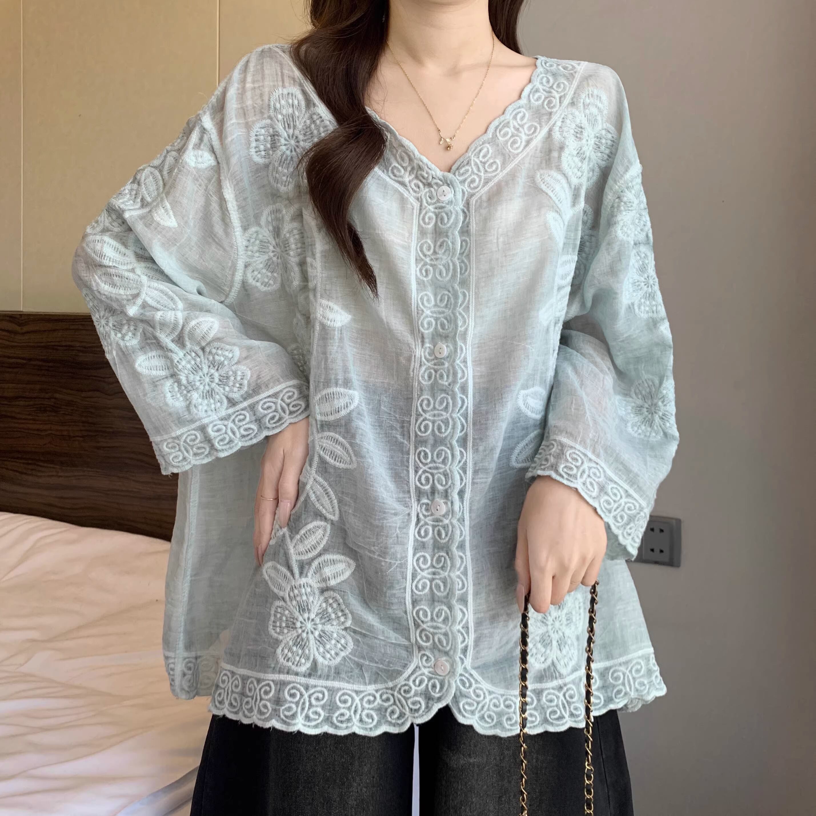 フラワー刺繍フリルカフスシャツ ・75301