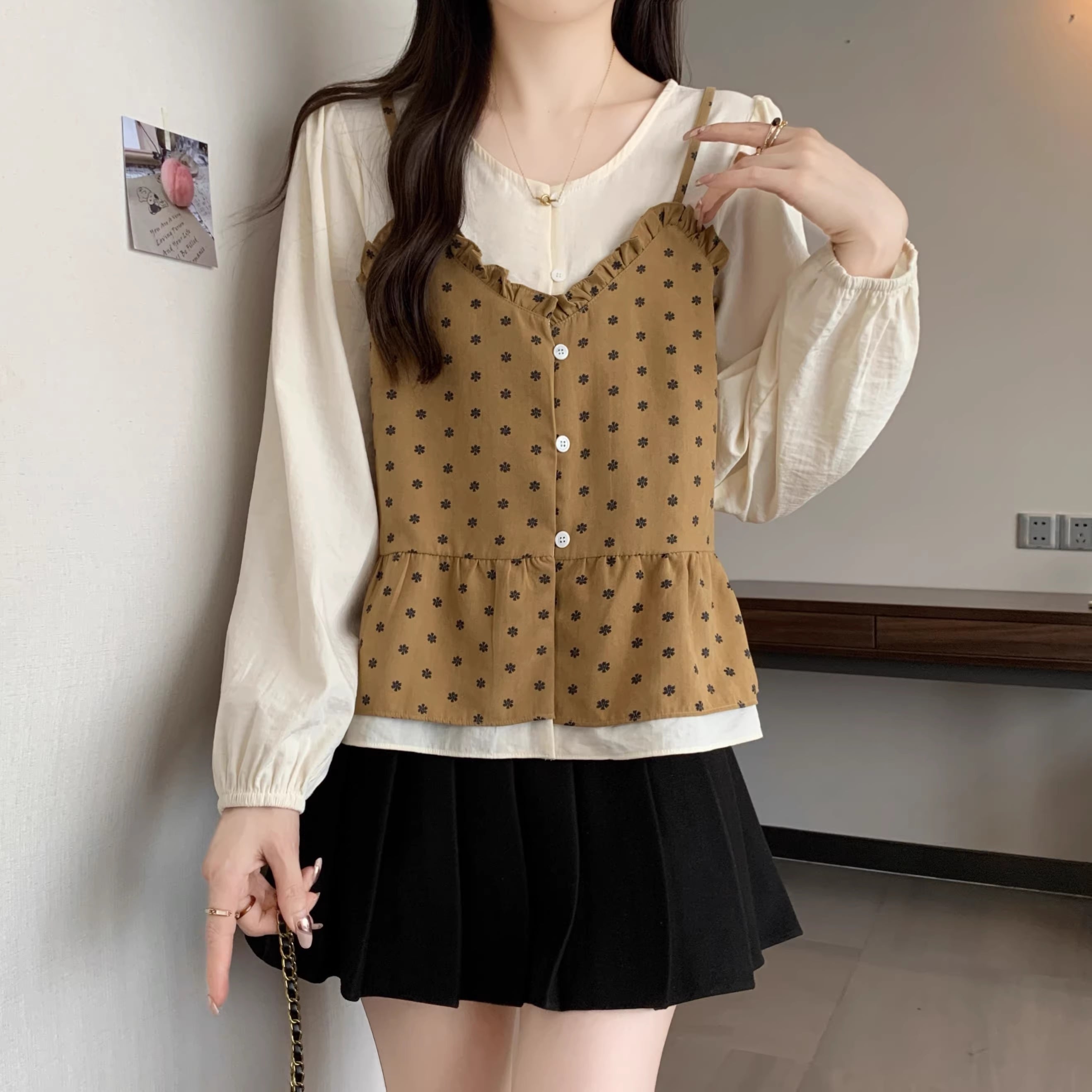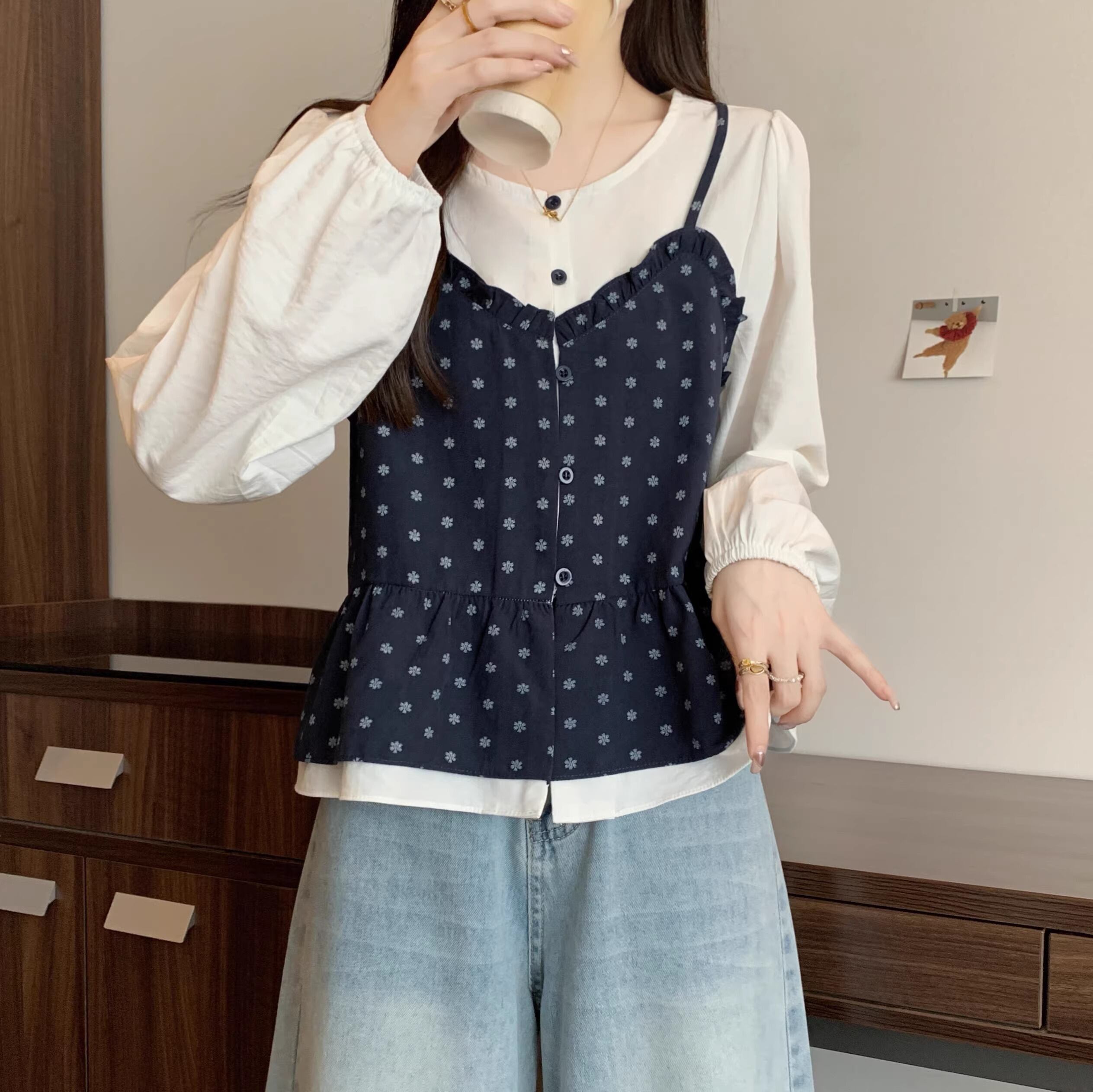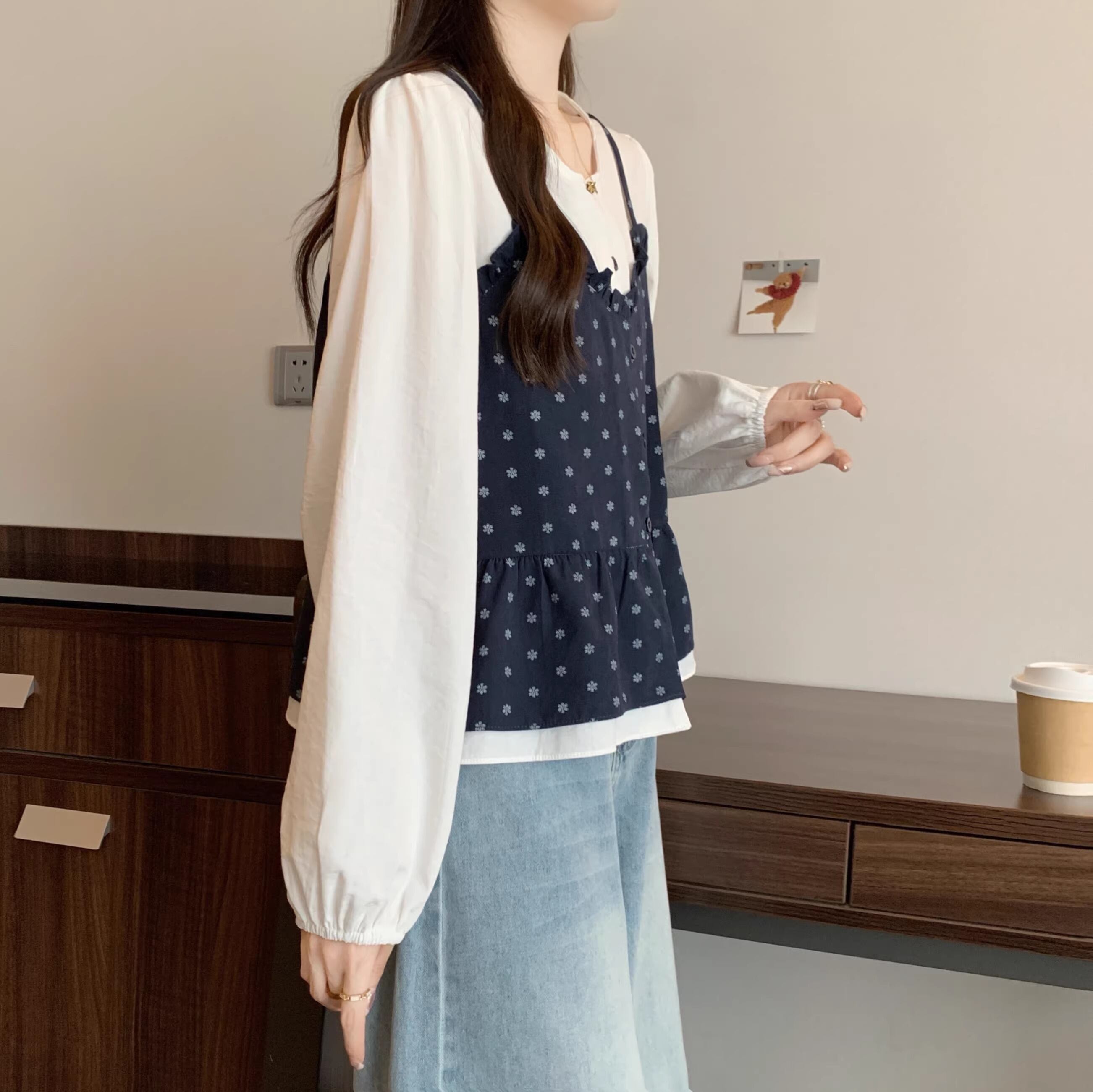 2色/フェイクレイヤードフーデッドニットトップス ・75335