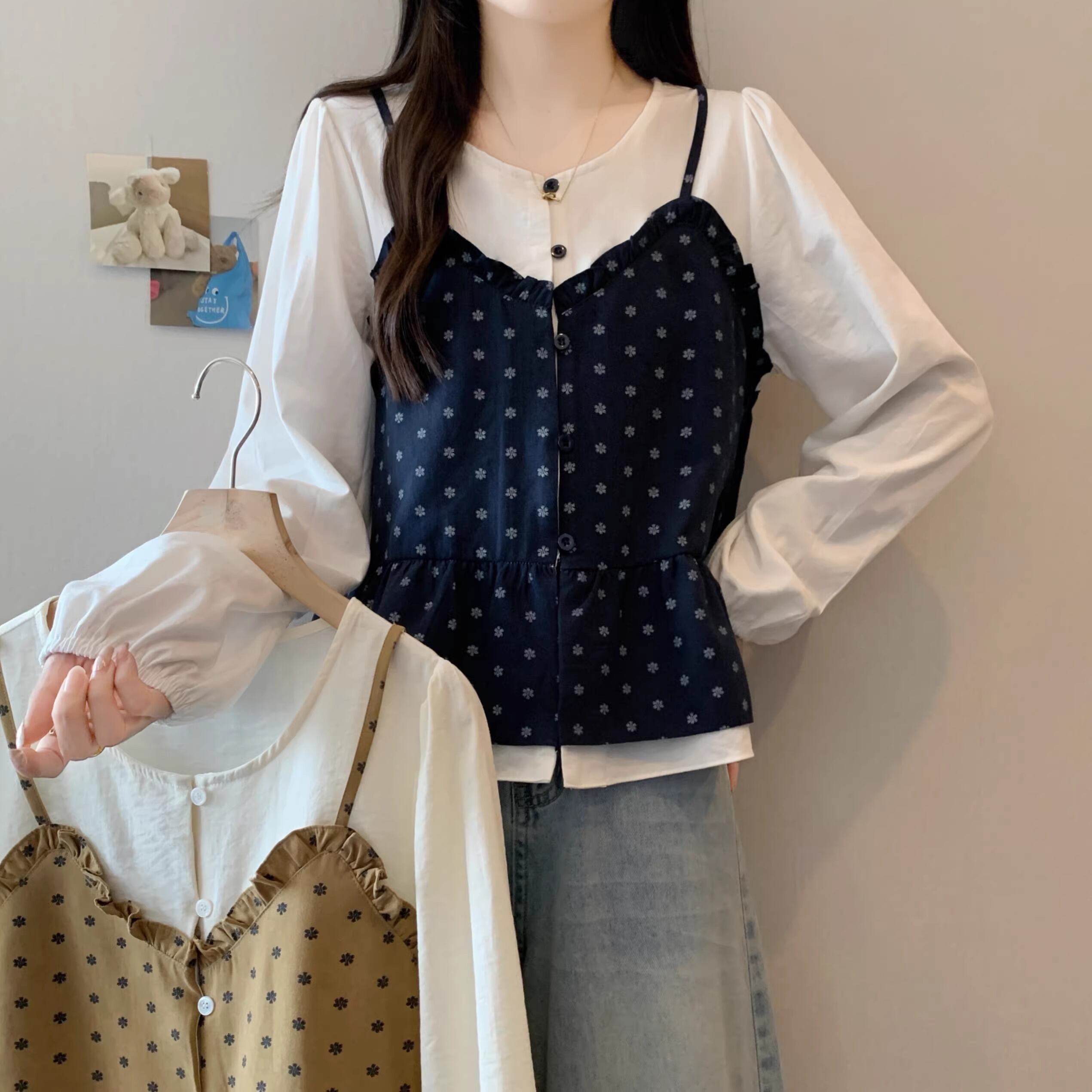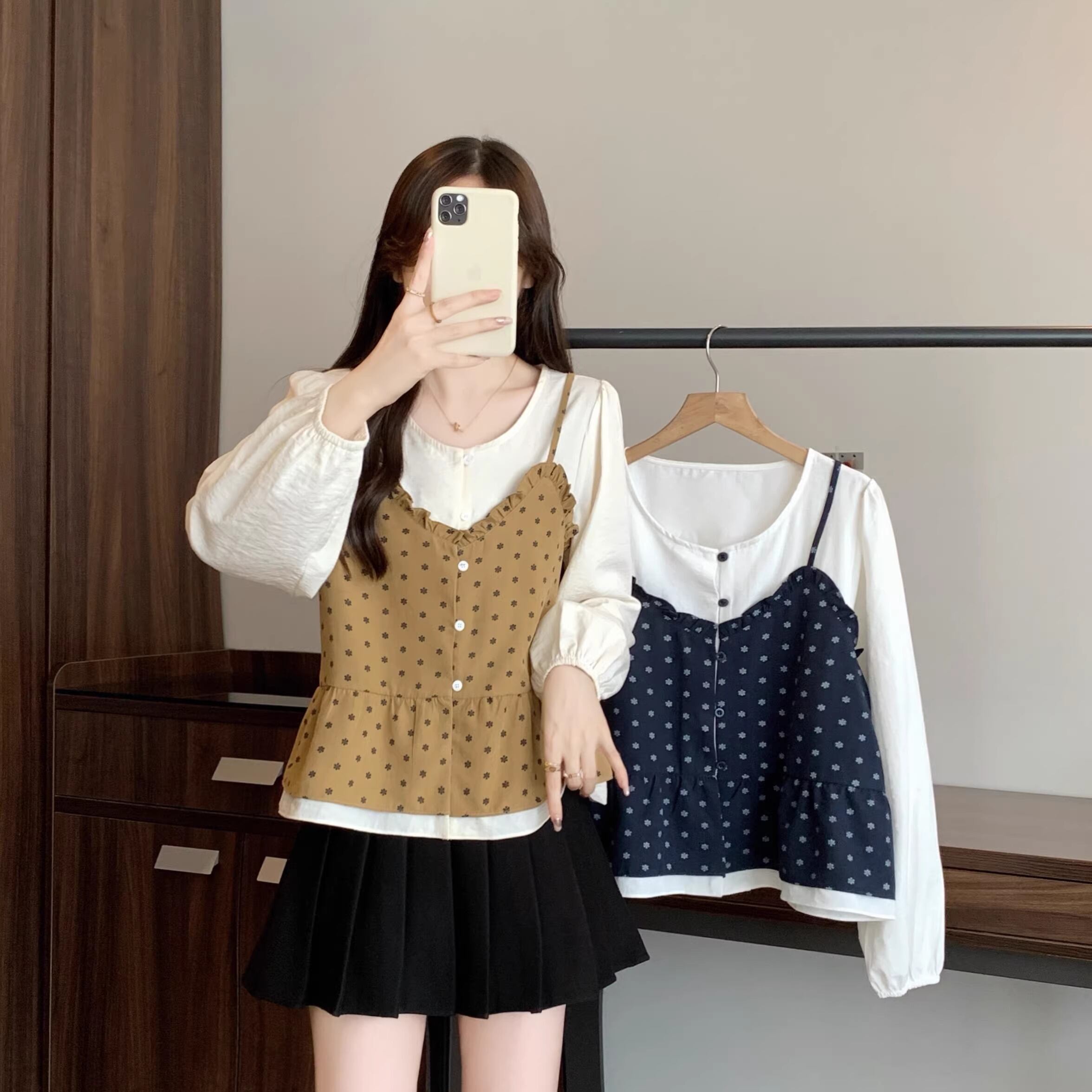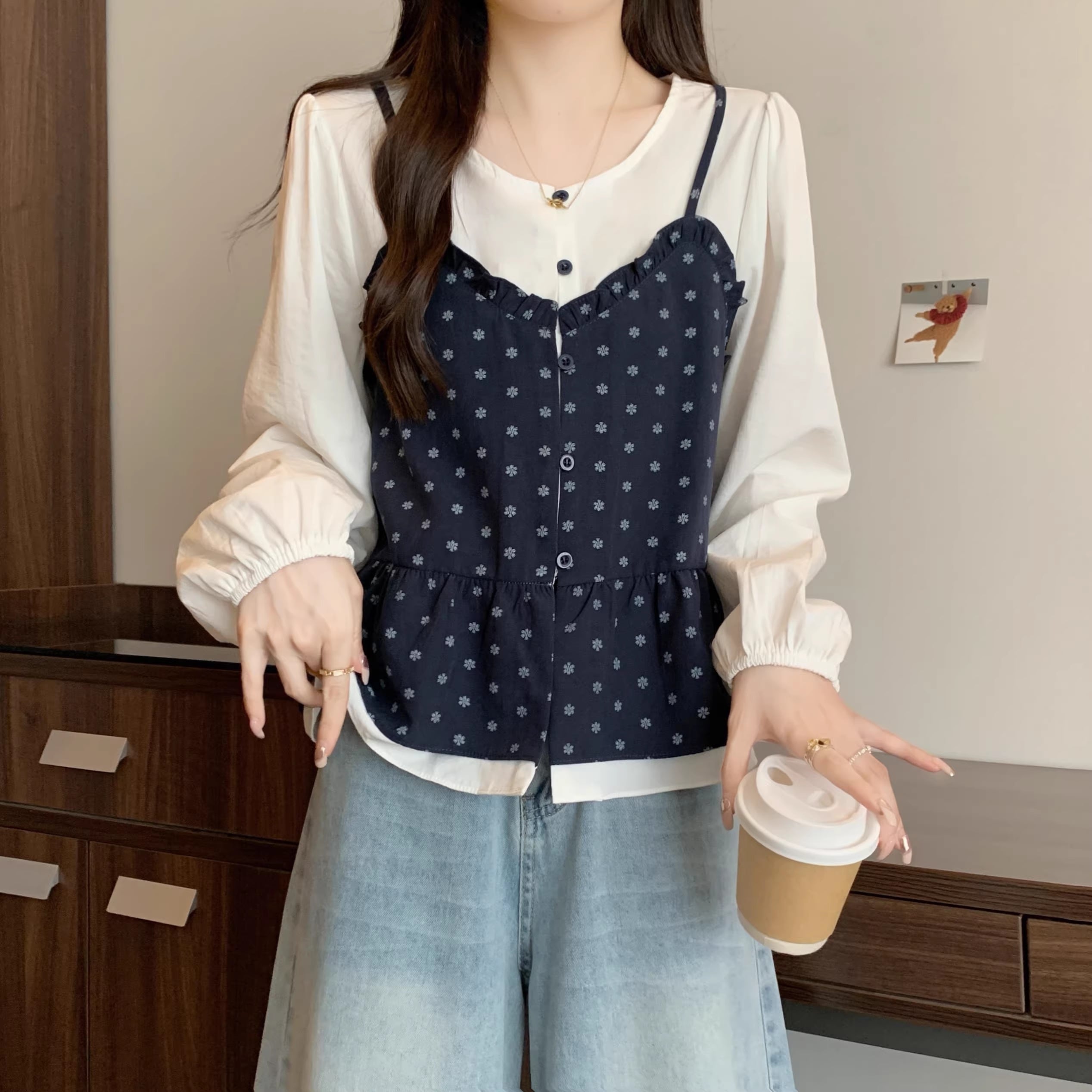 2色/フェイクレイヤードフーデッドニットトップス ・75335