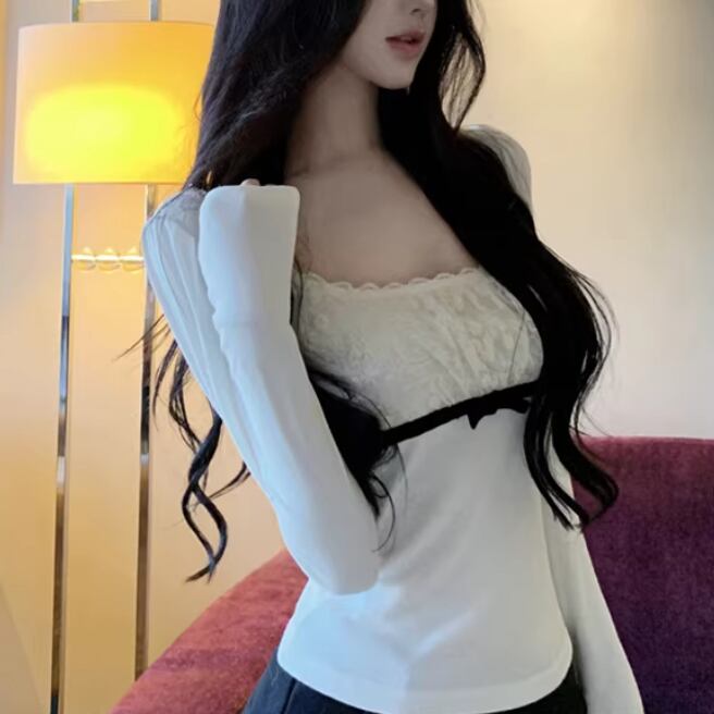 2色/フェイクレイヤードフーデッドニットトップス ・75335