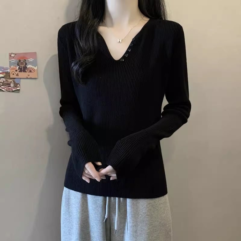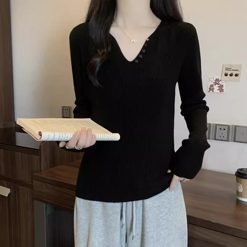 2色/バックリボンレースVネックニット ・75154