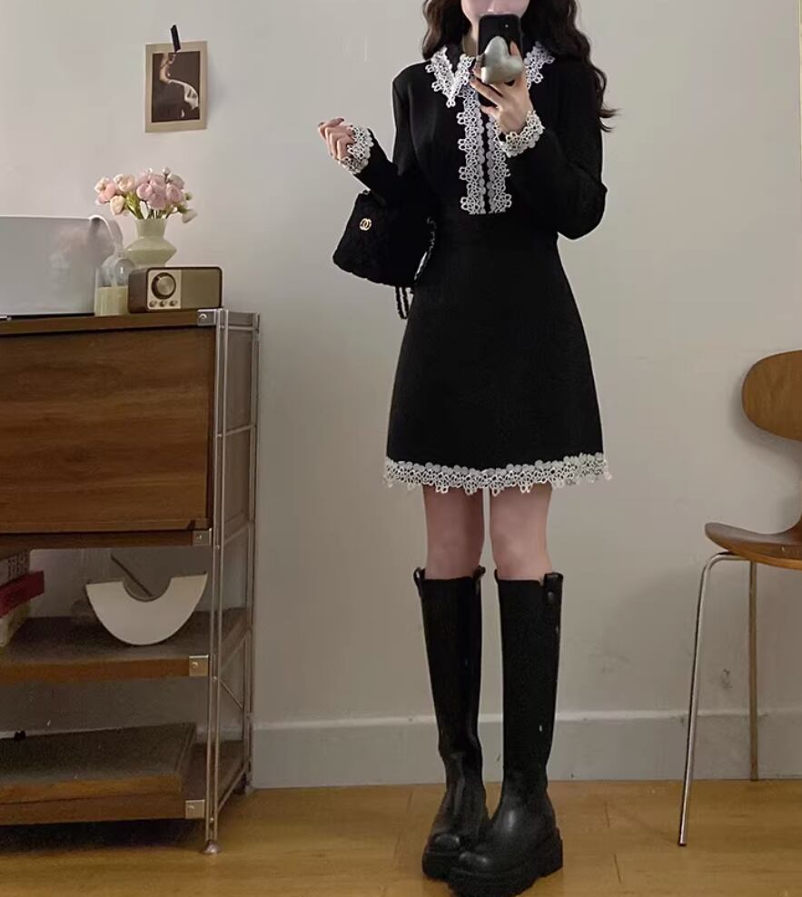 ポロカラーアーガイルニットワンピース ・72278