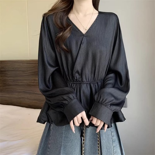レースカラーアシメボタンドッキングトップス ・71106