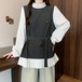 レースカラーアシメボタンドッキングトップス ・71106