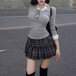 【2点セット】フリルリボンブラウス+チェック柄レースヘムスカート ・75250