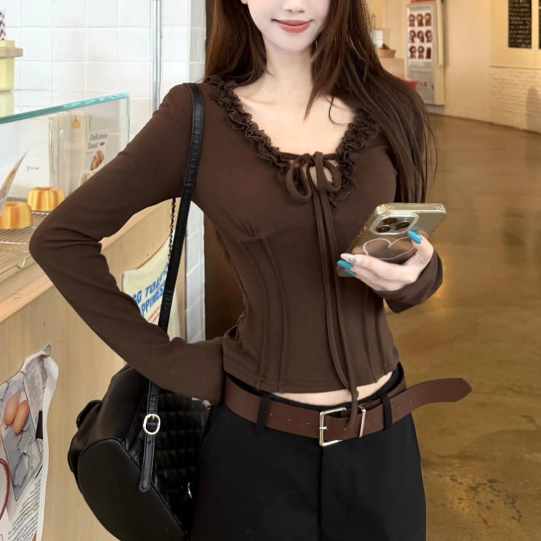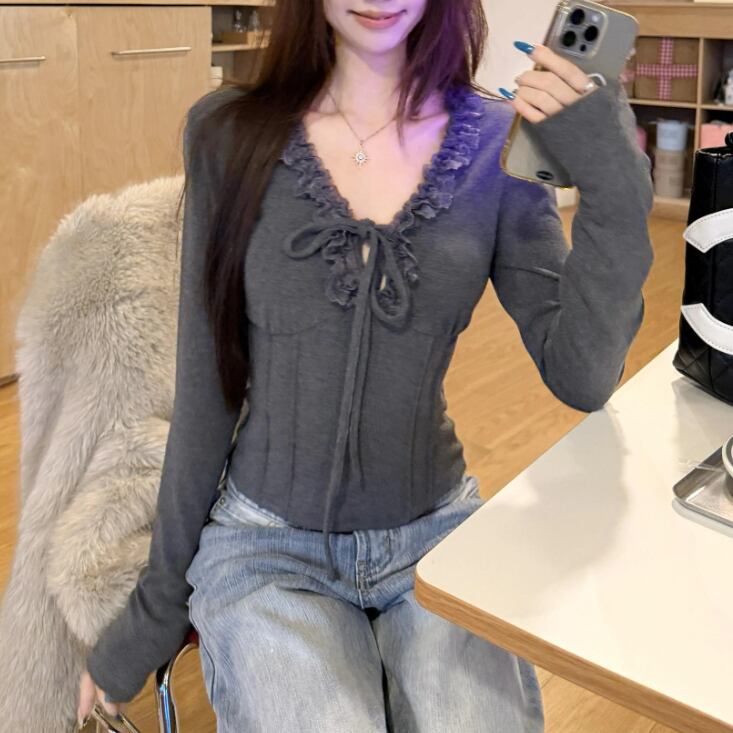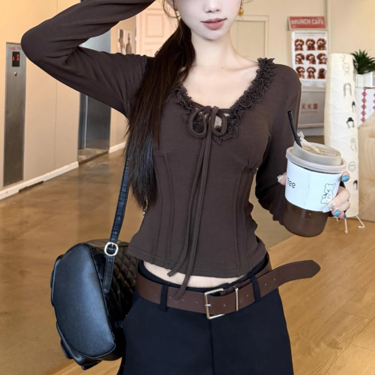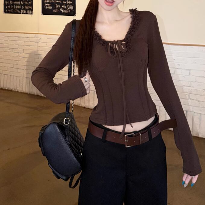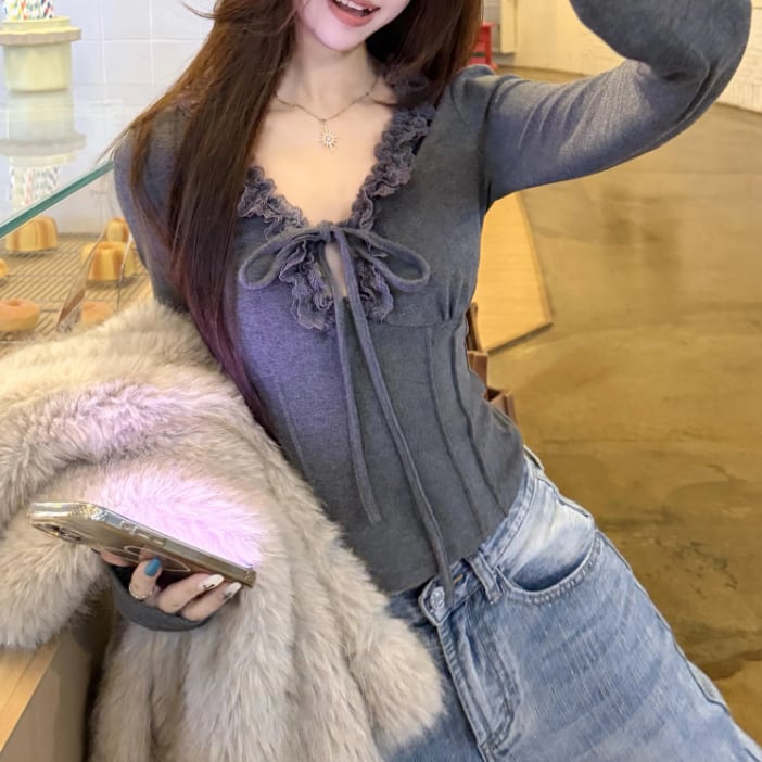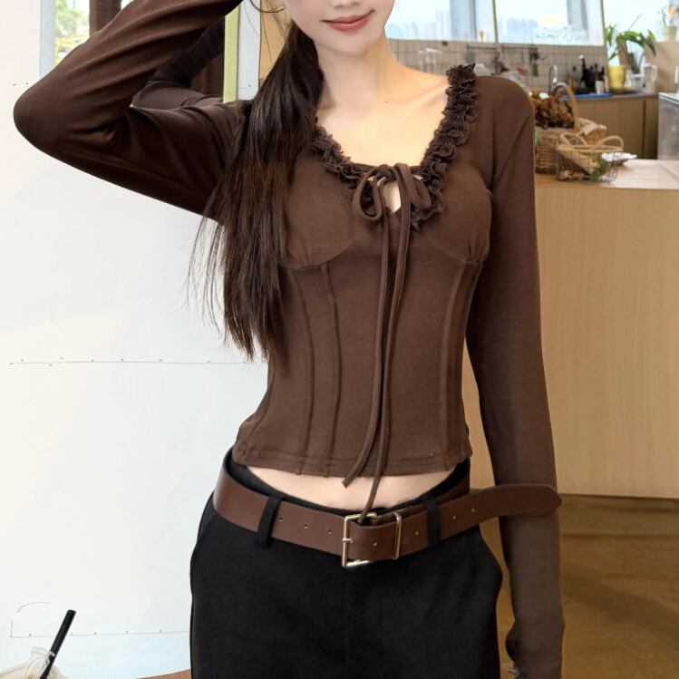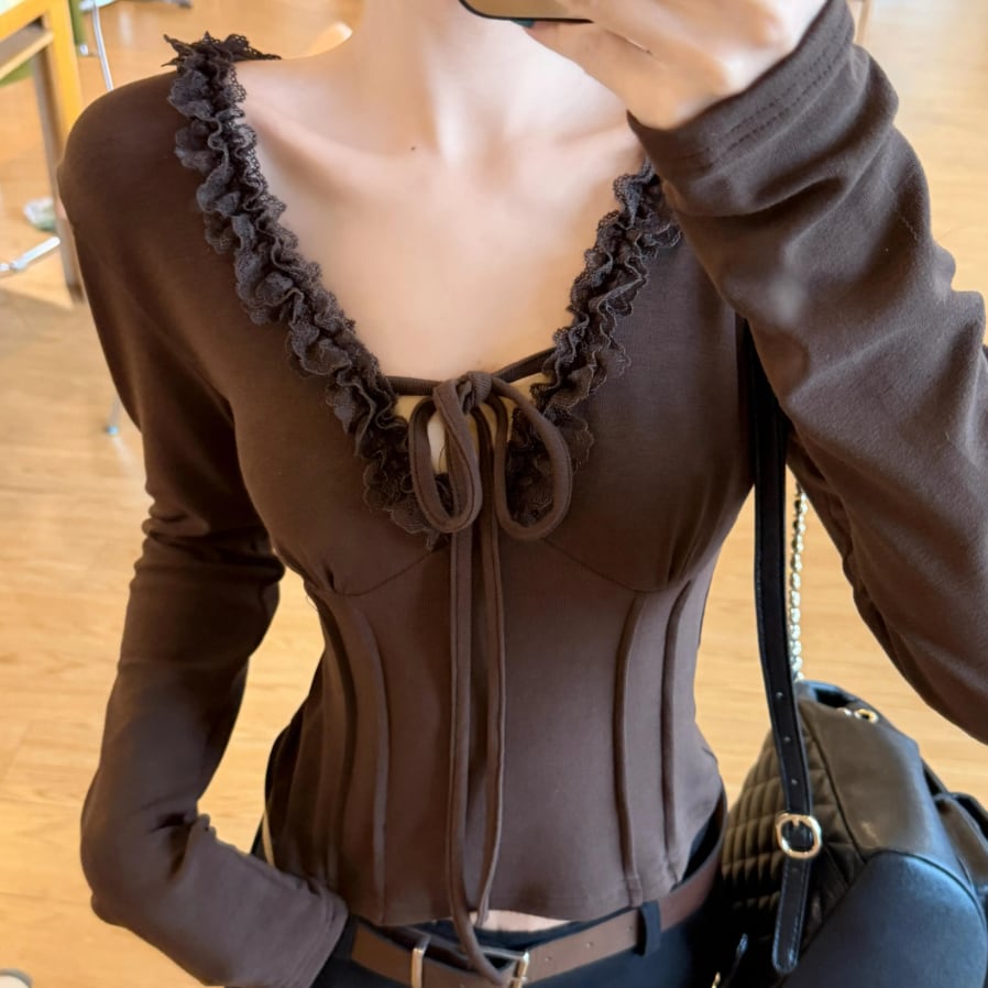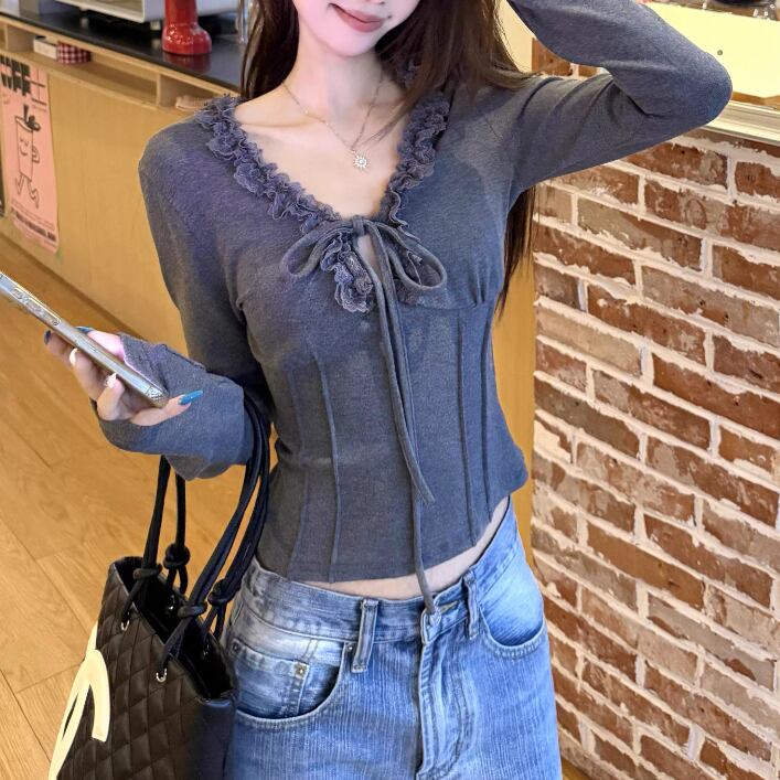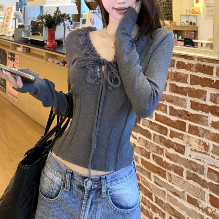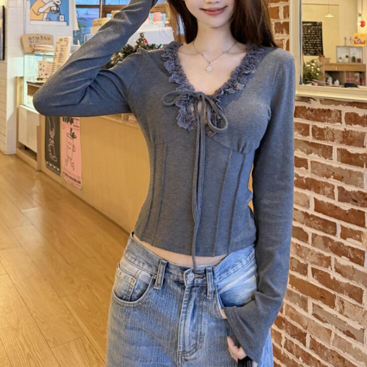 レースカラーアシメボタンドッキングトップス ・71106