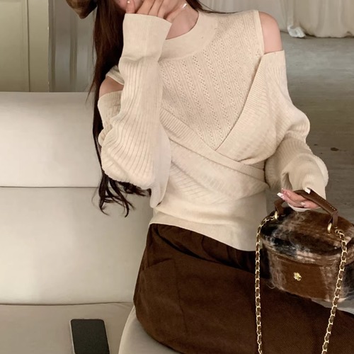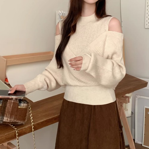3色/透かし編みベルスリーブオフショルニット ・74997