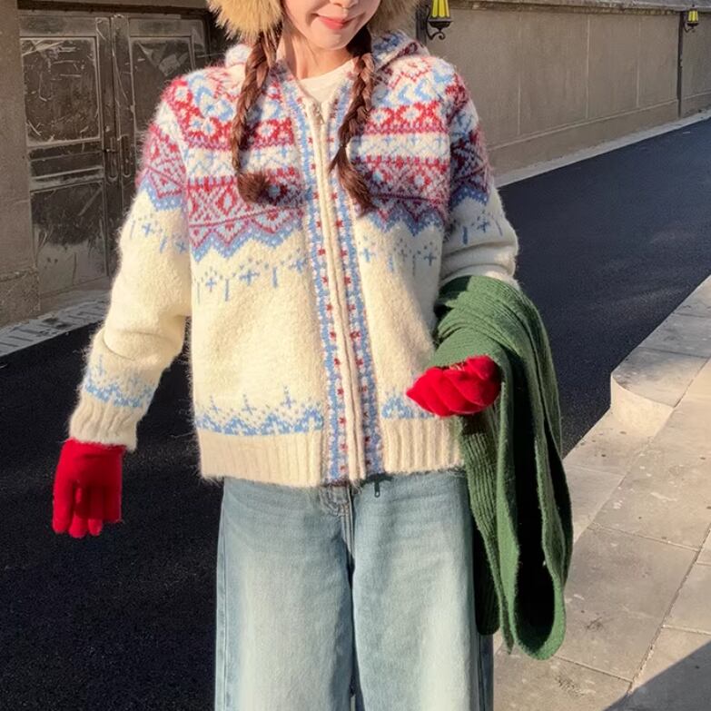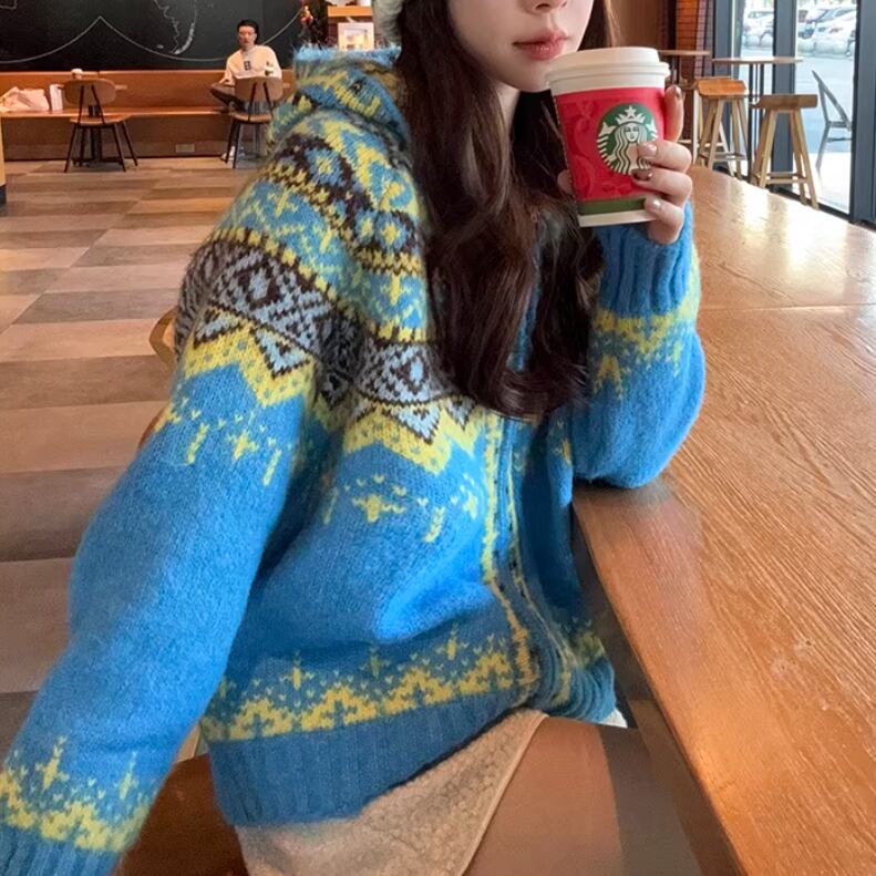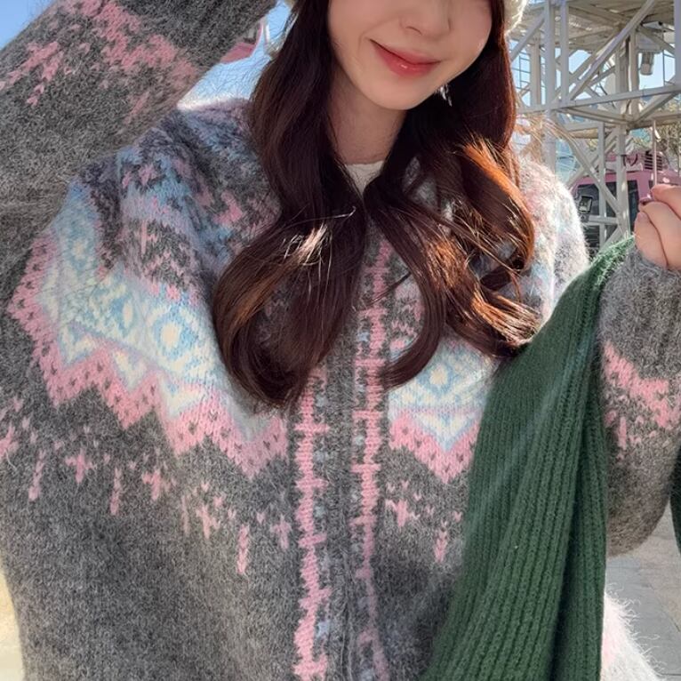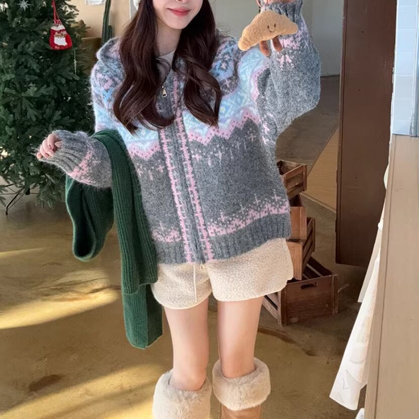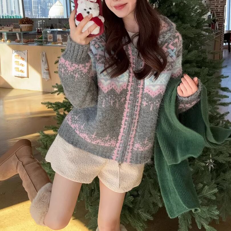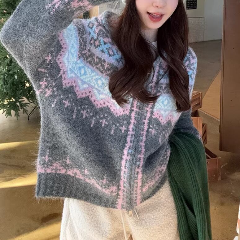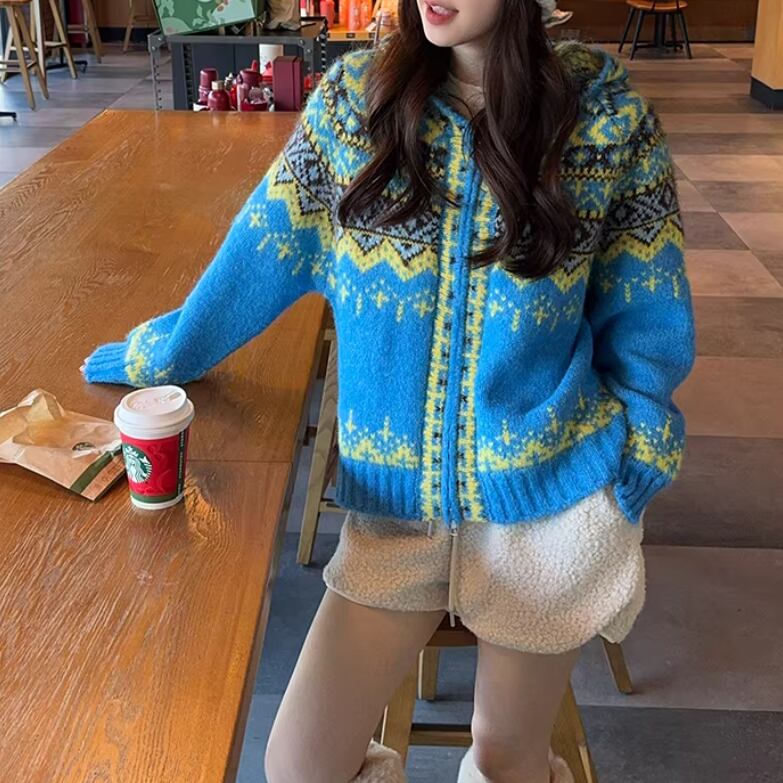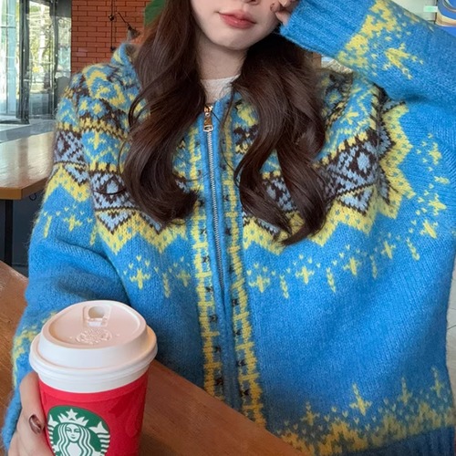 2色/ノルディック柄ポロカラーニットカーデ ・72764