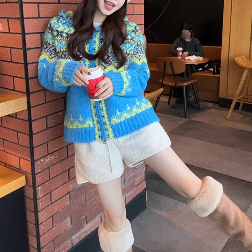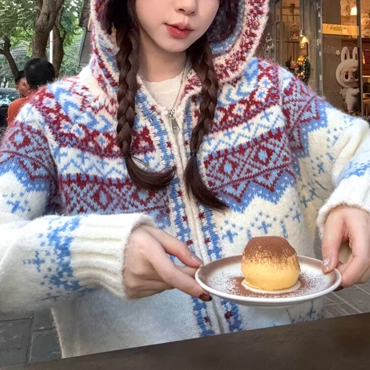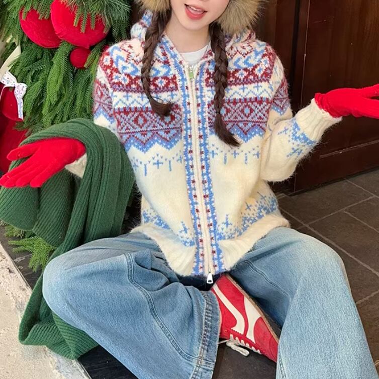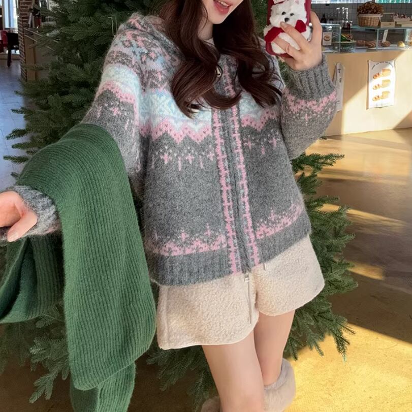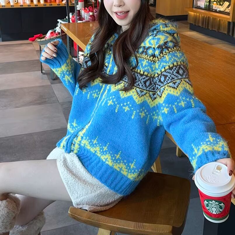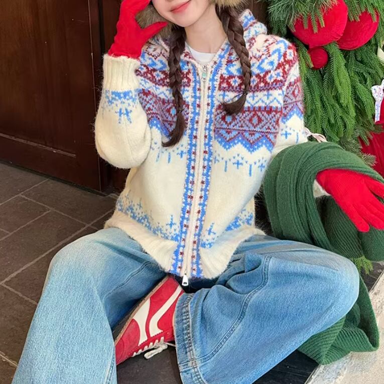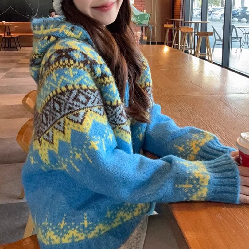 2色/ノルディック柄ポロカラーニットカーデ ・72764