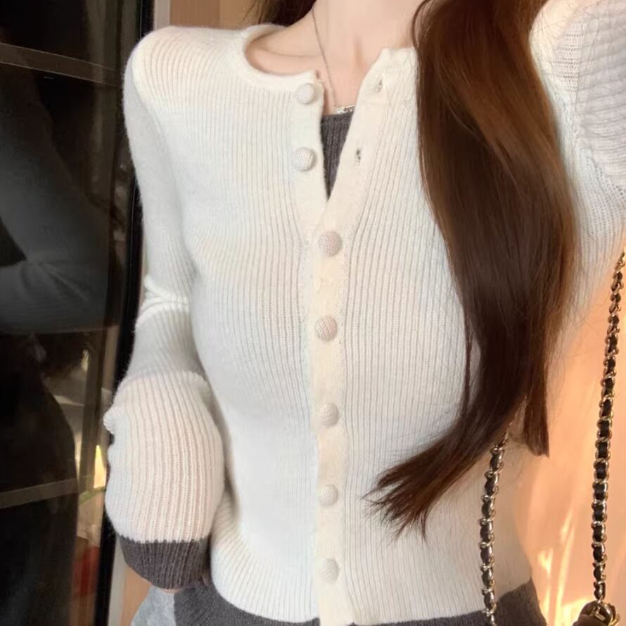 4色/クルーネッククロップドリブニット ・75152