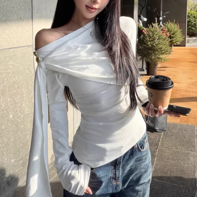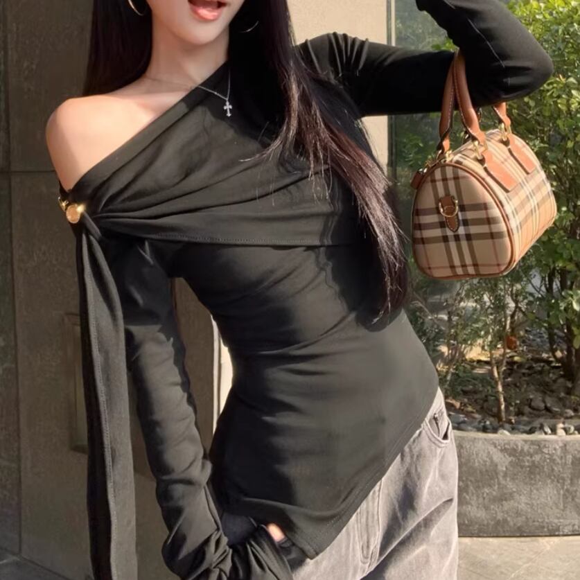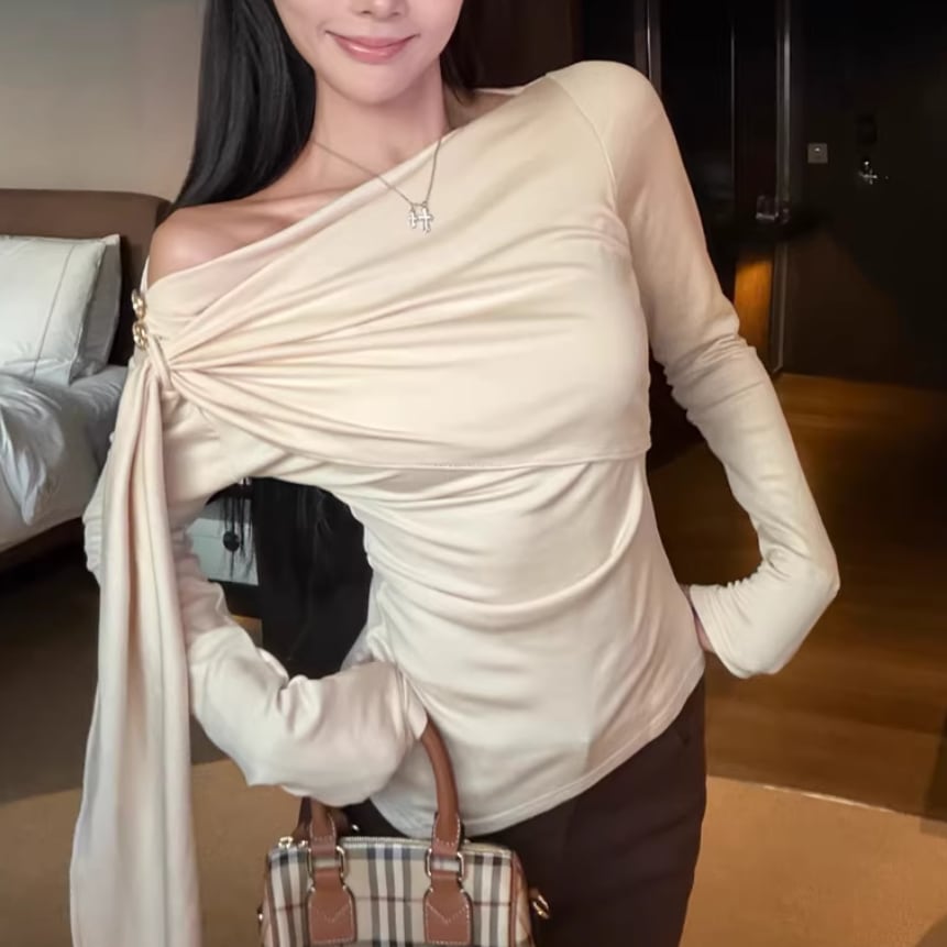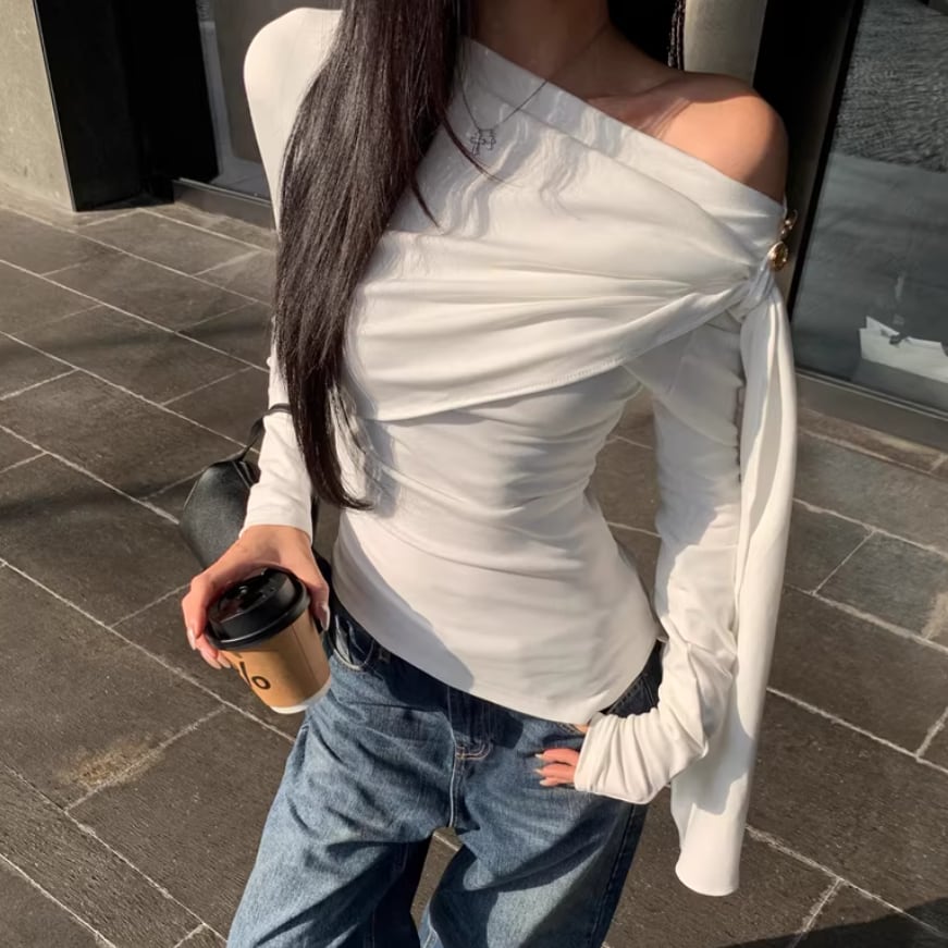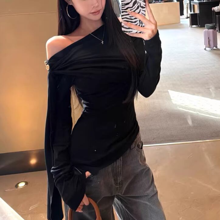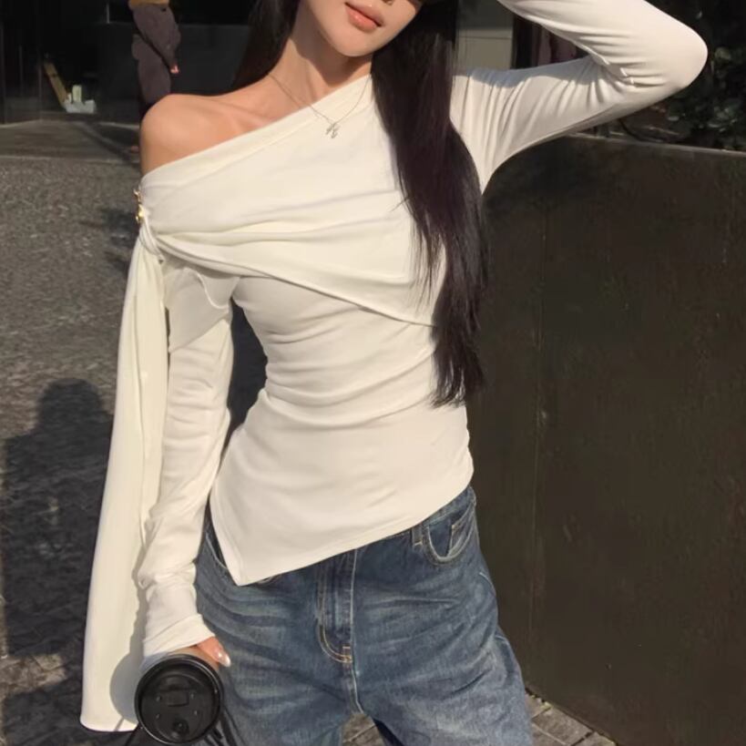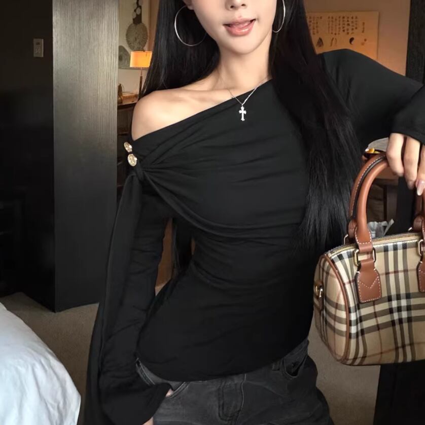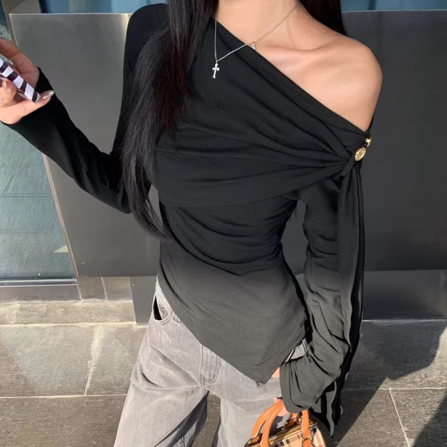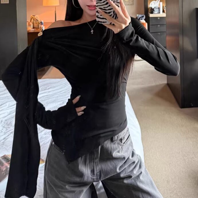 レースカラーアシメボタンドッキングトップス ・71106