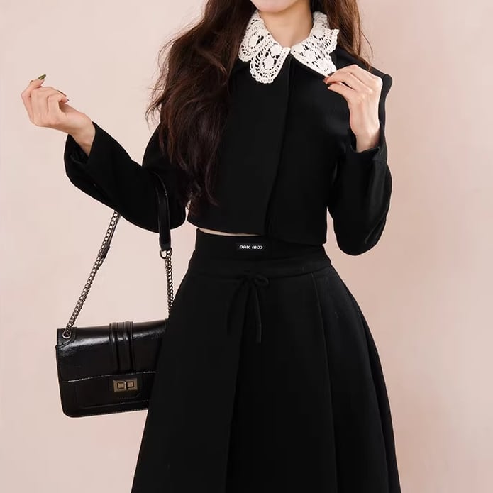 ▽Instagram「新作情報配信中」 フォローお願いいたします。 https://www.instagram.com/sucrier_closet/ ▼カラー ブラック ▼サイズ [ Sサイズ ] ジャケット:着丈39cm バスト92cm 肩幅39.5cm 袖丈62.5cm スカート:着丈90cm ウエスト63cm [ Mサイズ ] ジャケット:着丈40cm バスト96cm 肩幅40.5cm 袖丈63cm スカート:着丈91cm ウエスト67cm [ Lサイズ ] ジャケット:着丈41cm バスト100cm 肩幅41.5cm 袖丈63.5cm スカート:着丈92cm ウエスト71cm [ XLサイズ ] ジャケット:着丈42cm バスト104cm 肩幅42.5cm 袖丈64cm スカート:着丈93cm ウエスト75cm ※1-3cm程度の誤差がある場合がございます。予めご了承ください。 ▼シーズン 秋,冬 ▼同じカテゴリの商品はこちら https://www.sucrier.jp/categories/1737171 ▽お支払い方法 ・クレジットカード決済 ・キャリア決済 (docomo/au/Softbank/Y!mobile) ・後払い決済 (商品お届け後コンビニ払いなど) ▽注意点 ※こちらの商品は決済から10日-3週間前後でのお届けとなります。 ※配送日時指定等に関しては、ご指定できないことご了承くださいませ。 ※できる限り早くお届けできるように手配させて頂きます。 ※検品はしておりますが、もし届いた商品に不備がありましたら、誠実に対応させていただきます。 商品ID:SC074964