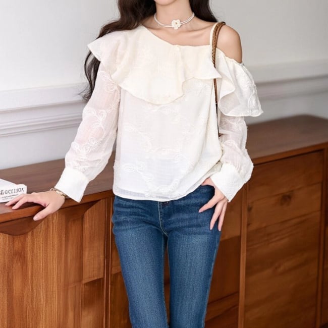 2色/フェイクレイヤードフーデッドニットトップス ・75335