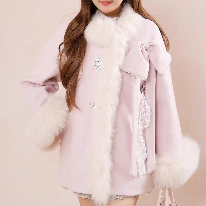 2色/エコファーカラーボウタイコート ・75019