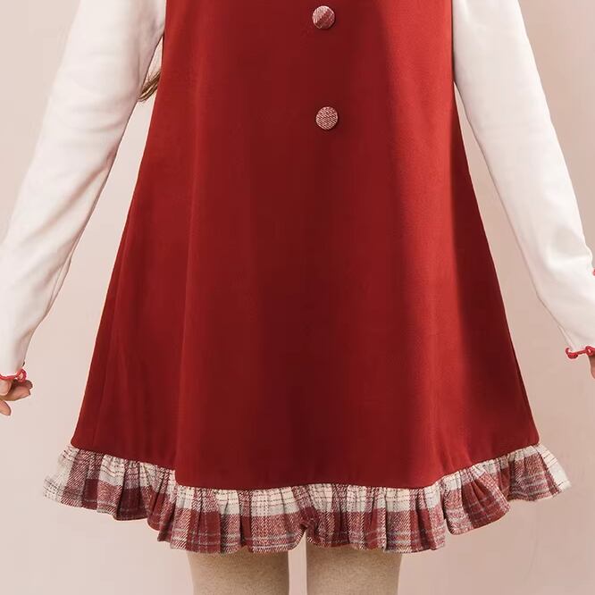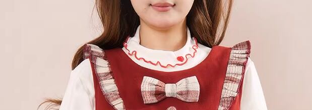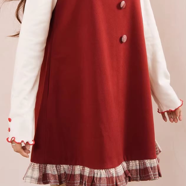 【2点セット】フリルリボンブラウス+チェック柄レースヘムスカート ・75250