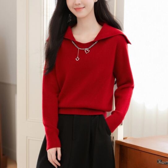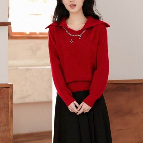 2色/バックリボンレースVネックニット ・75154