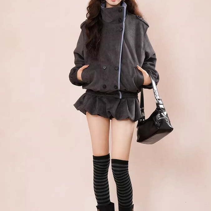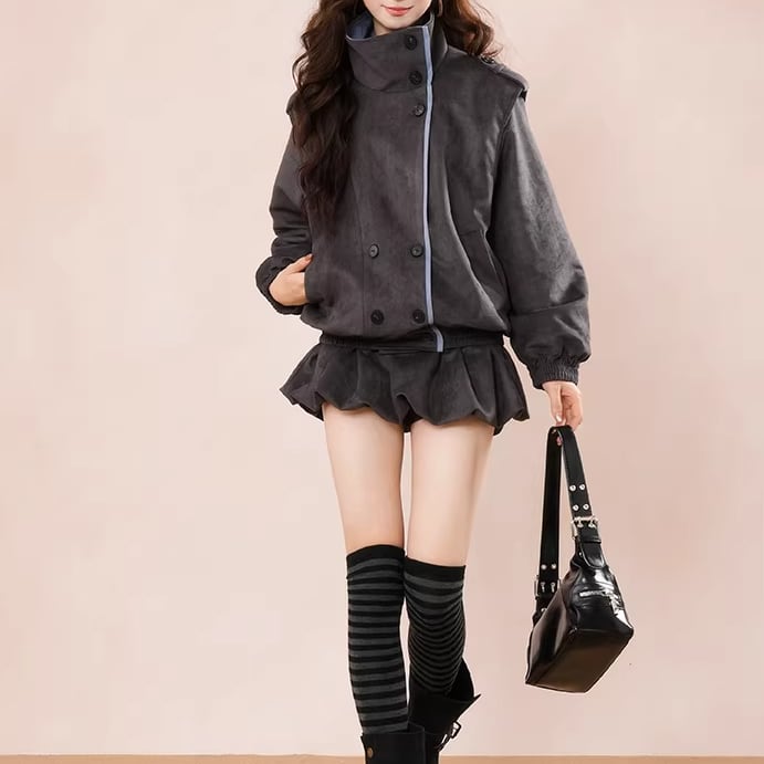 ▽Instagram「新作情報配信中」 フォローお願いいたします。 https://www.instagram.com/sucrier_closet/ ▼カラー グレー ▼サイズ [ Sサイズ ] ジャケット:着丈108cm バスト92cm ウエスト72cm スカート:着丈27cm ウエスト58cm [ Mサイズ ] ジャケット:着丈109cm バスト96cm ウエスト76cm スカート:着丈28cm ウエスト59cm [ Lサイズ ] ジャケット:着丈110cm バスト100cm ウエスト80cm スカート:着丈29cm ウエスト60cm [ XLサイズ ] ジャケット:着丈111cm バスト104cm ウエスト84cm スカート:着丈30cm ウエスト61cm ※1-3cm程度の誤差がある場合がございます。予めご了承ください。 ▼シーズン 秋,冬 ▼同じカテゴリの商品はこちら https://www.sucrier.jp/categories/1737171 ▽お支払い方法 ・クレジットカード決済 ・キャリア決済 (docomo/au/Softbank/Y!mobile) ・後払い決済 (商品お届け後コンビニ払いなど) ▽注意点 ※こちらの商品は決済から10日-3週間前後でのお届けとなります。 ※配送日時指定等に関しては、ご指定できないことご了承くださいませ。 ※できる限り早くお届けできるように手配させて頂きます。 ※検品はしておりますが、もし届いた商品に不備がありましたら、誠実に対応させていただきます。 商品ID:SC074927