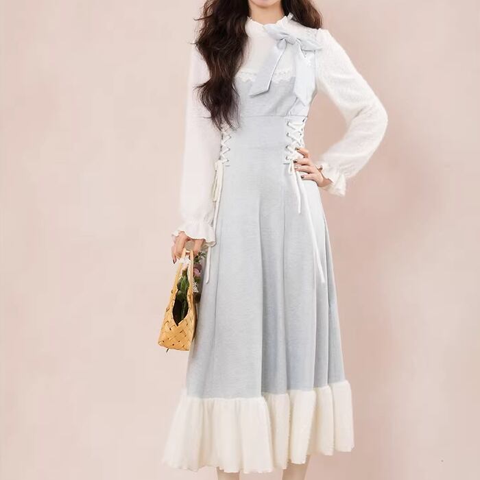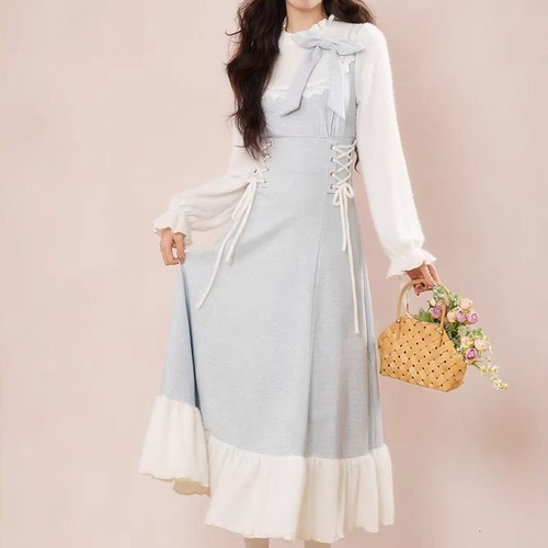 2色/切替ストライプリボンプリーツワンピ ・63127