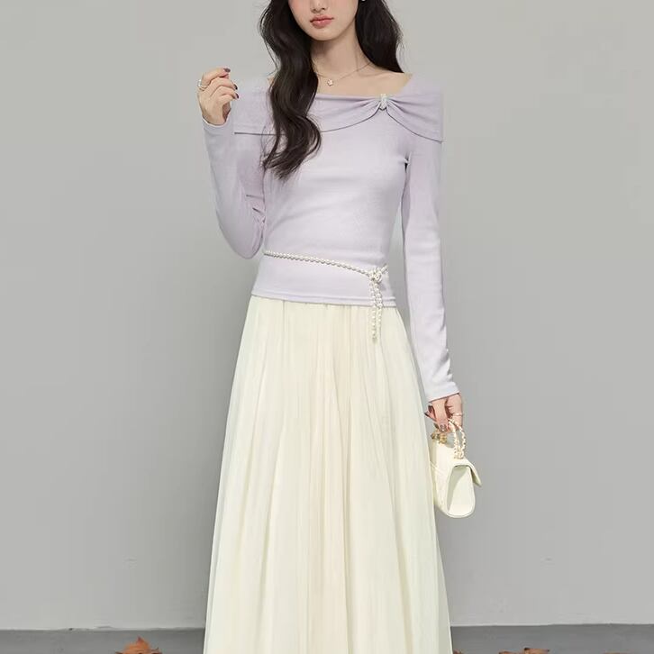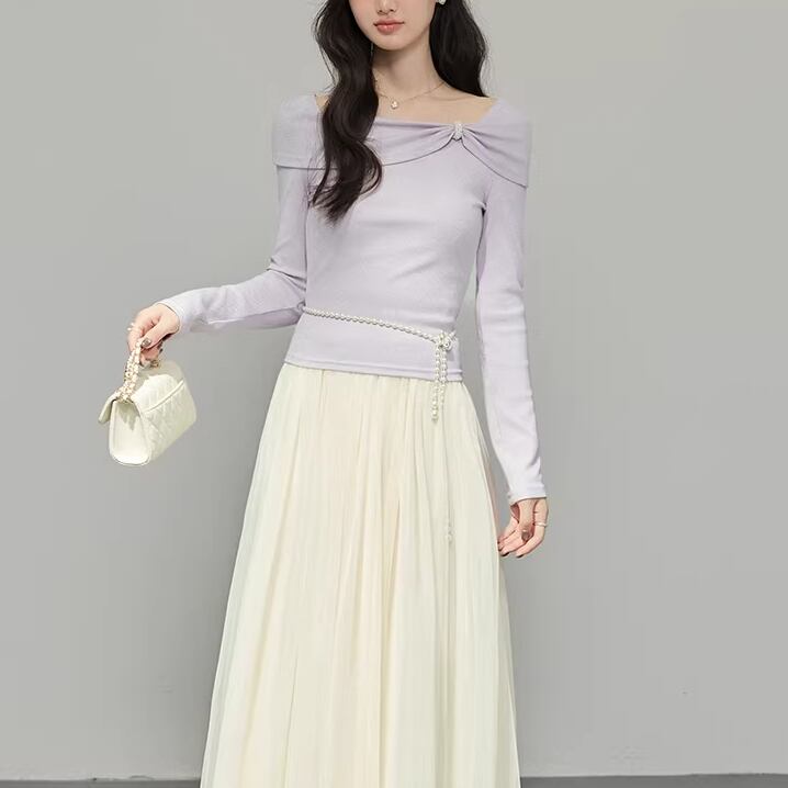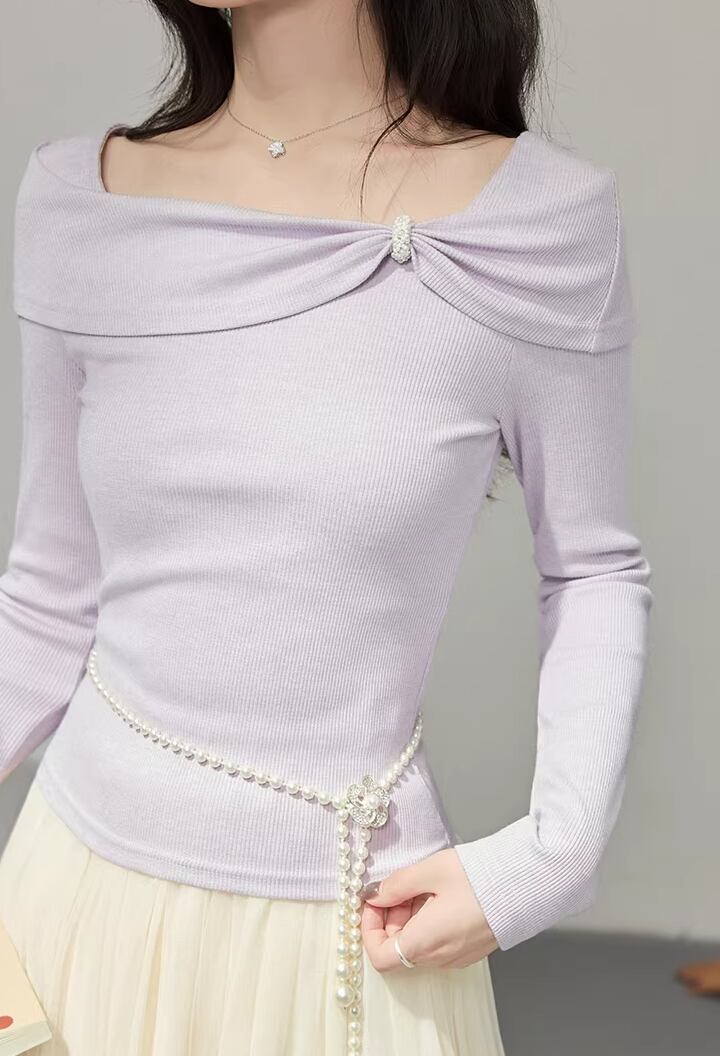 2色/フェイクレイヤードフーデッドニットトップス ・75335