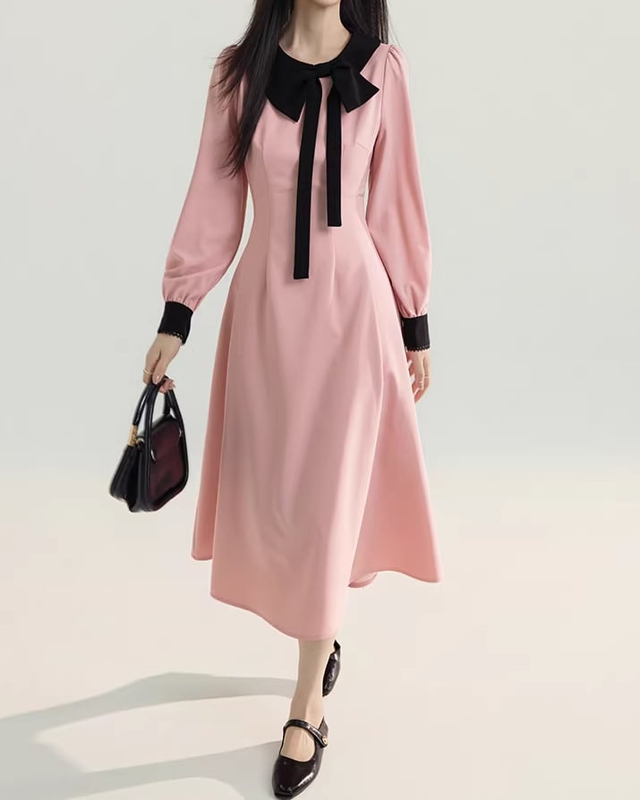2色/切替ストライプリボンプリーツワンピ ・63127