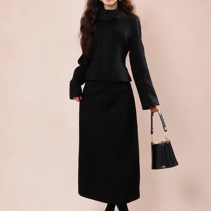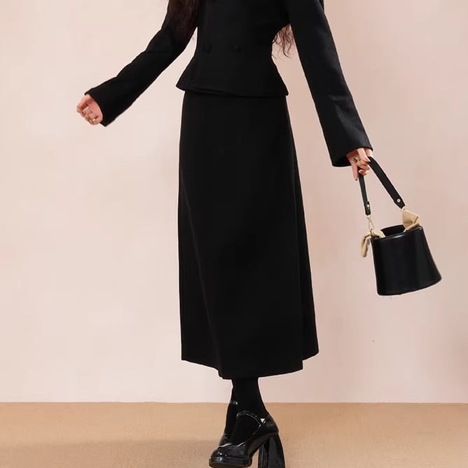 ▽Instagram「新作情報配信中」 フォローお願いいたします。 https://www.instagram.com/sucrier_closet/ ▼カラー ブラック ▼サイズ [ Sサイズ ] ジャケット:着丈52cm バスト92cm 肩幅39cm 袖丈60cm スカート:着丈84cm ウエスト64cm [ Mサイズ ] ジャケット:着丈53cm バスト96cm 肩幅40cm 袖丈61cm スカート:着丈85cm ウエスト68cm [ Lサイズ ] ジャケット:着丈54cm バスト100cm 肩幅41cm 袖丈62cm スカート:着丈86cm ウエスト72cm [ XLサイズ ] ジャケット:着丈55cm バスト104cm 肩幅42cm 袖丈63cm スカート:着丈87cm ウエスト76cm ※1-3cm程度の誤差がある場合がございます。予めご了承ください。 ▼シーズン 秋,冬 ▼同じカテゴリの商品はこちら https://www.sucrier.jp/categories/1737171 ▽お支払い方法 ・クレジットカード決済 ・キャリア決済 (docomo/au/Softbank/Y!mobile) ・後払い決済 (商品お届け後コンビニ払いなど) ▽注意点 ※こちらの商品は決済から10日-3週間前後でのお届けとなります。 ※配送日時指定等に関しては、ご指定できないことご了承くださいませ。 ※できる限り早くお届けできるように手配させて頂きます。 ※検品はしておりますが、もし届いた商品に不備がありましたら、誠実に対応させていただきます。 商品ID:SC074881