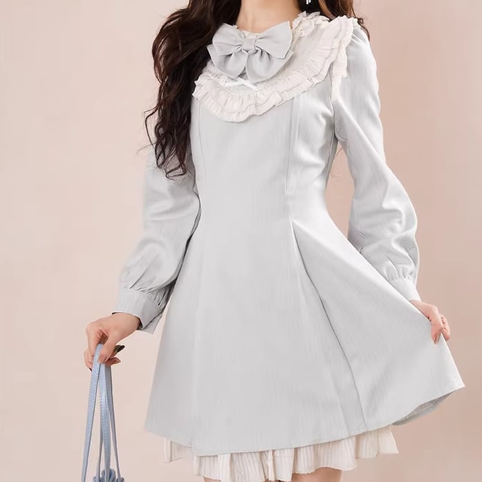 2色/切替ストライプリボンプリーツワンピ ・63127