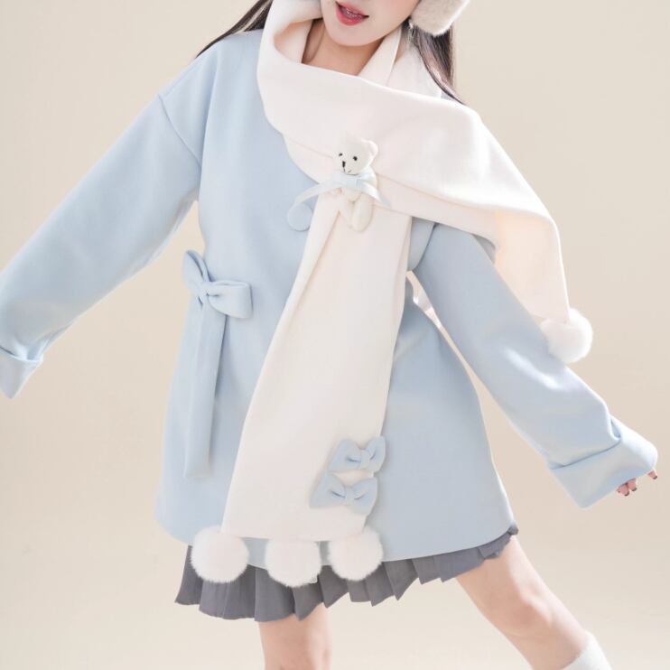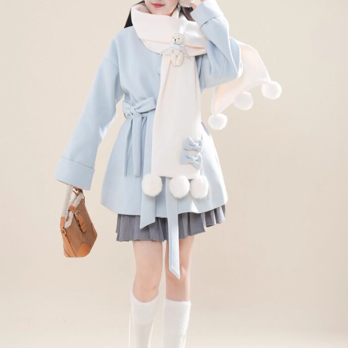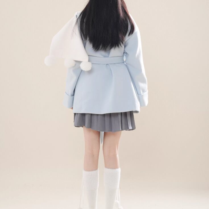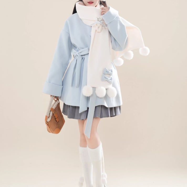【2点セット】ファーカラーリボンジャケット+ティアードスカート ・75381