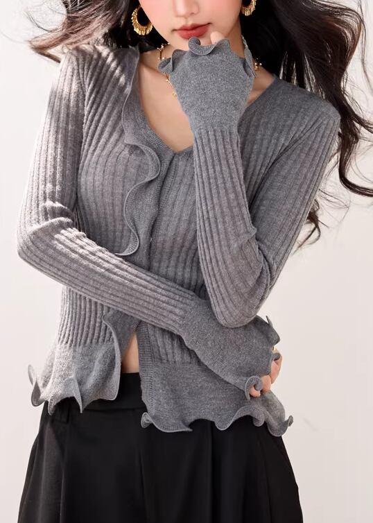 2色/フェイクレイヤードフーデッドニットトップス ・75335