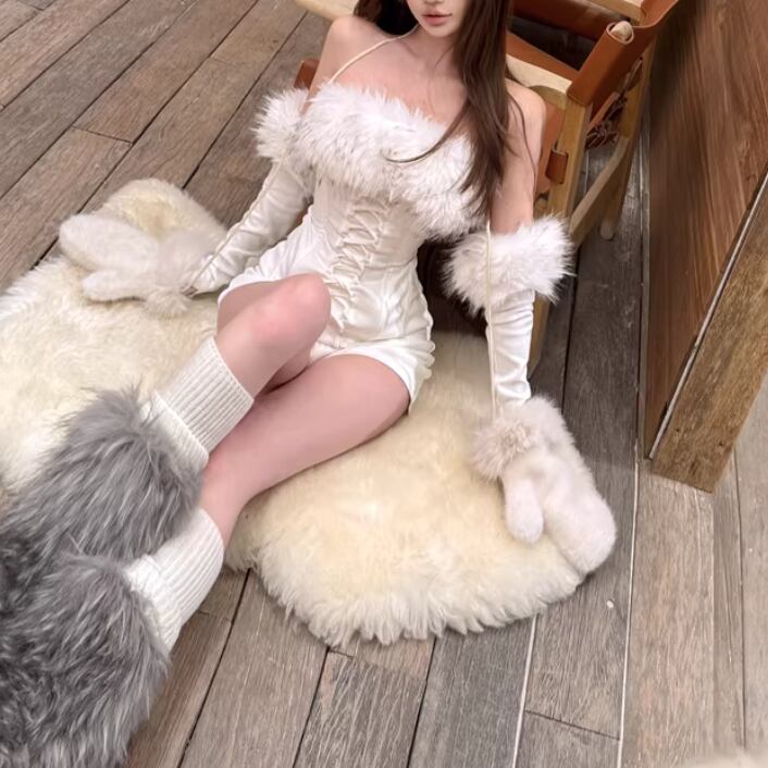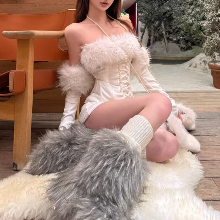 【2点セット】ショートジャケット+ファートリムティアードリボンキャミワンピ ・63097