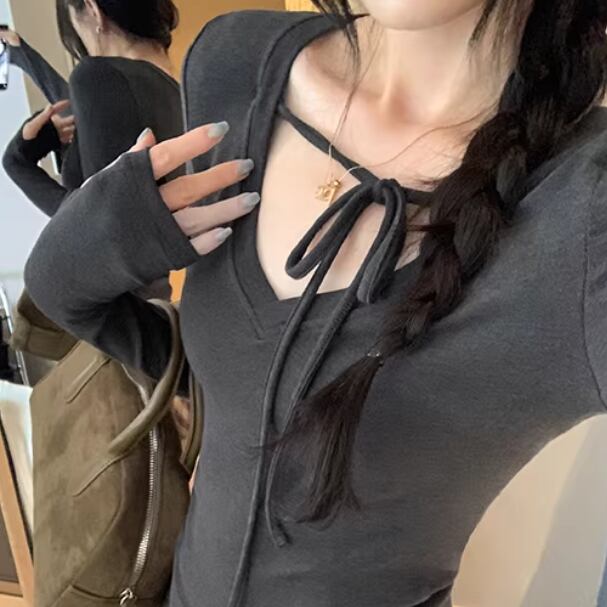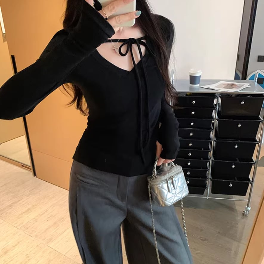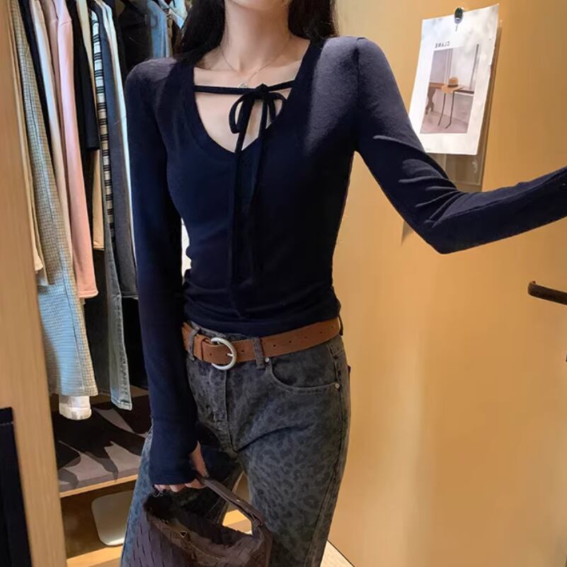 2色/フェイクレイヤードフーデッドニットトップス ・75335