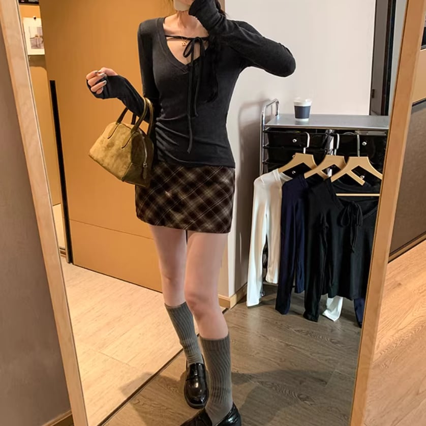 3色/スクエアネックペプラムトップス ・75343