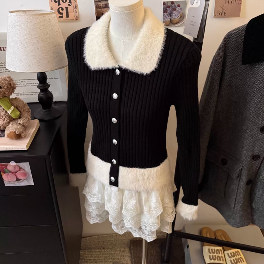 ラウンドネックドットニットカーディガン ・75296