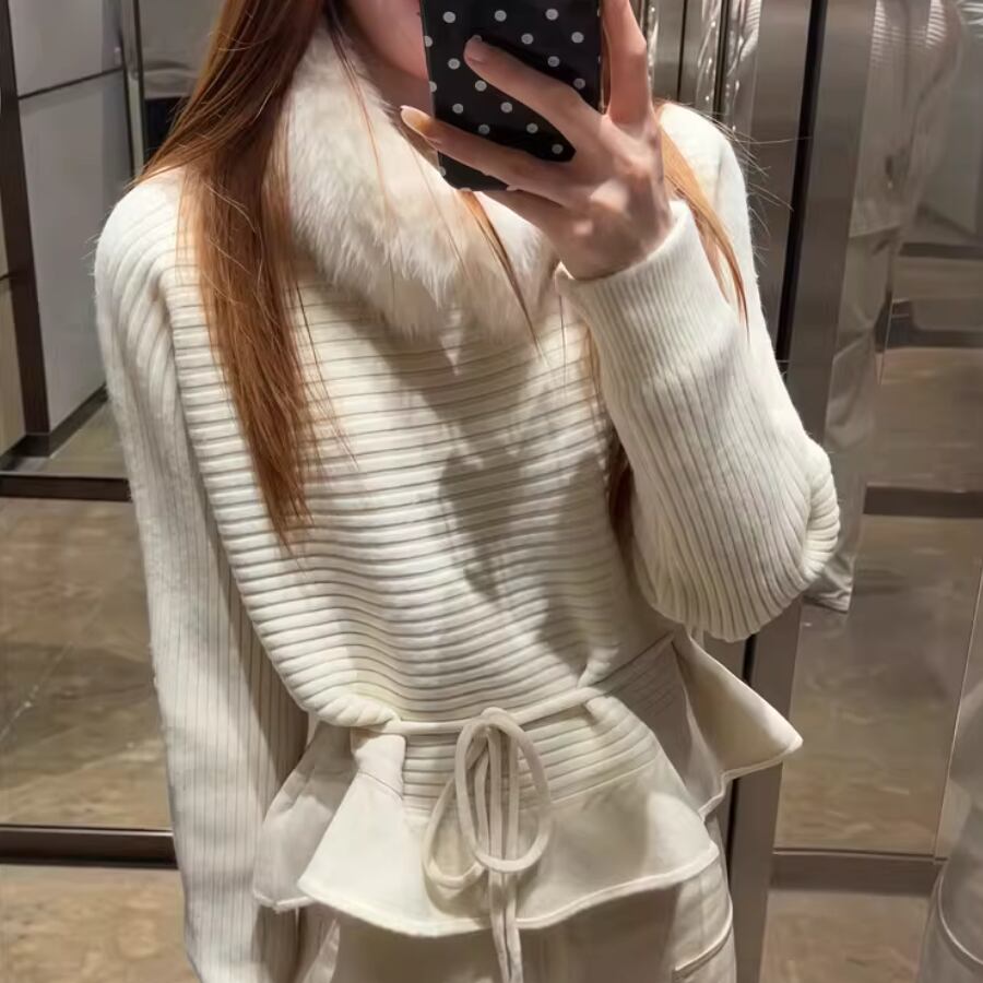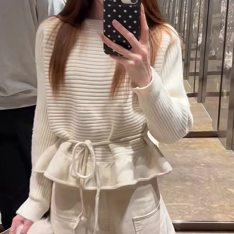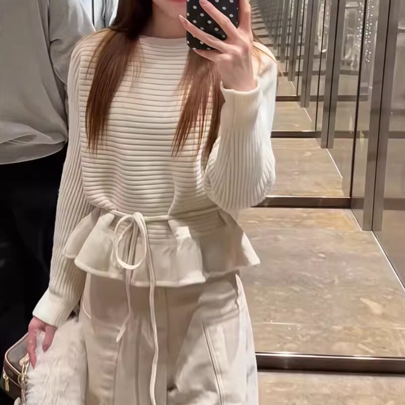2色/バックリボンレースVネックニット ・75154