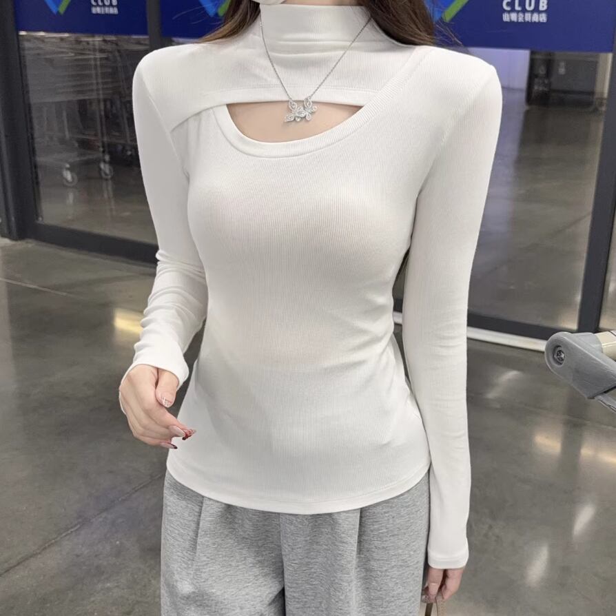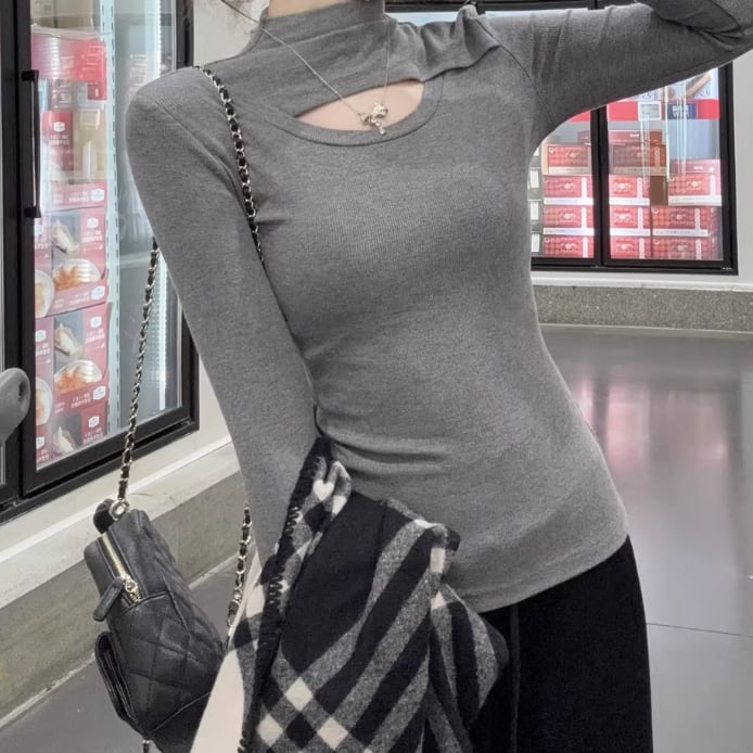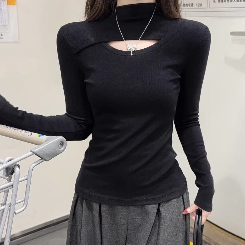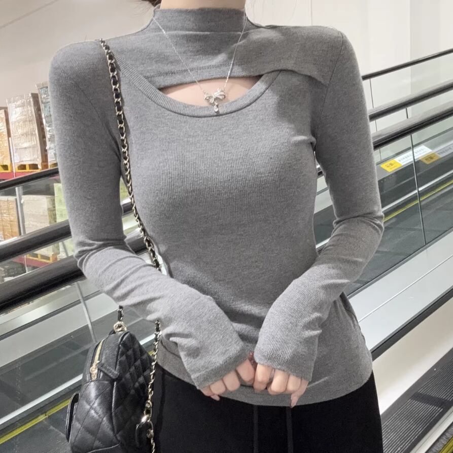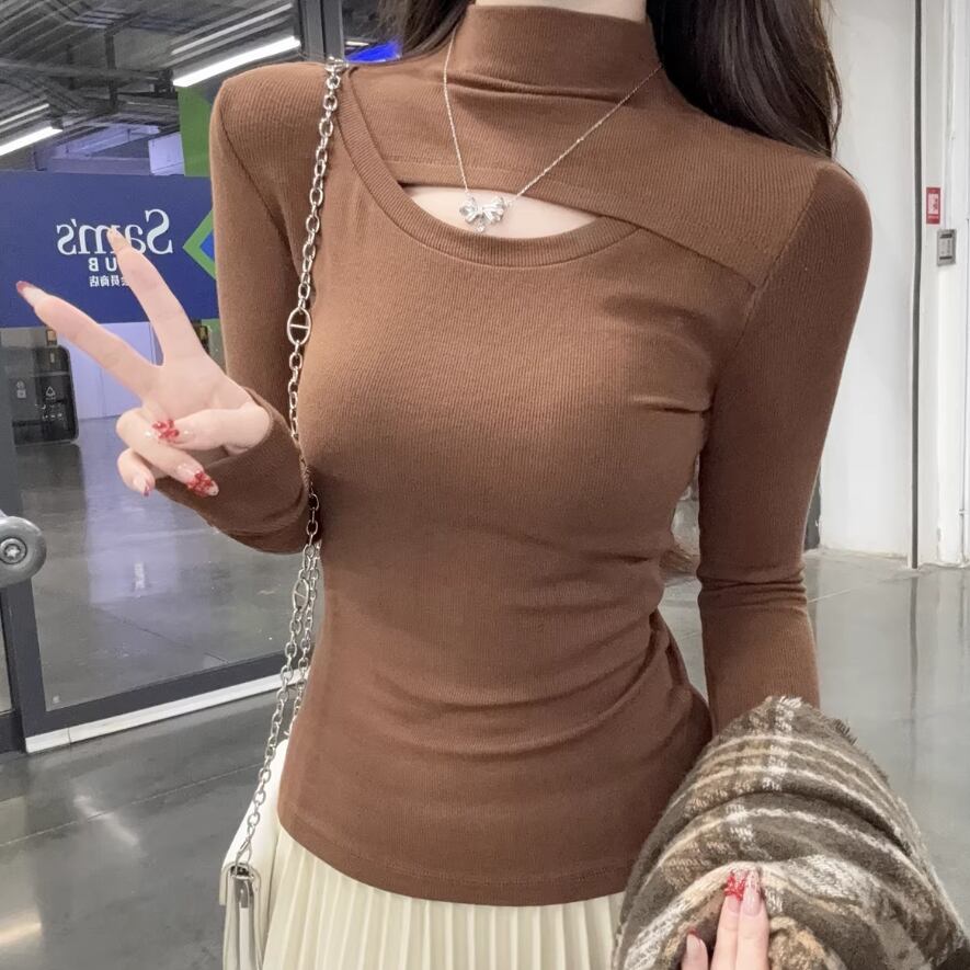 2色/フェイクレイヤードフーデッドニットトップス ・75335