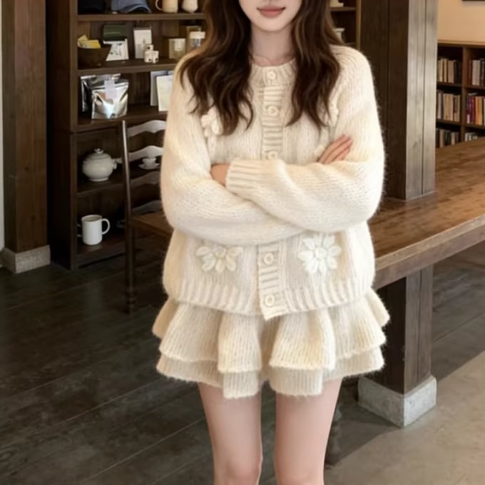 ▽Instagram「新作情報配信中」 フォローお願いいたします。 https://www.instagram.com/sucrier_closet/ ▼サイズ [ フリーサイズ ] カーデ:着丈54cm バスト124cm 袖丈70cm スカート:着丈34cm ウエスト62-72cm ※1-3cm程度の誤差がある場合がございます。予めご了承ください。 ▼シーズン 秋,冬 ▼同じカテゴリの商品はこちら https://www.sucrier.jp/categories/1737171 ▽お支払い方法 ・クレジットカード決済 ・キャリア決済 (docomo/au/Softbank/Y!mobile) ・後払い決済 (商品お届け後コンビニ払いなど) ▽注意点 ※こちらの商品は決済から10日-3週間前後でのお届けとなります。 ※配送日時指定等に関しては、ご指定できないことご了承くださいませ。 ※できる限り早くお届けできるように手配させて頂きます。 ※検品はしておりますが、もし届いた商品に不備がありましたら、誠実に対応させていただきます。 商品ID:SC074797