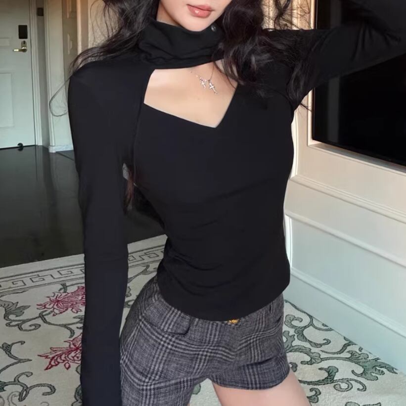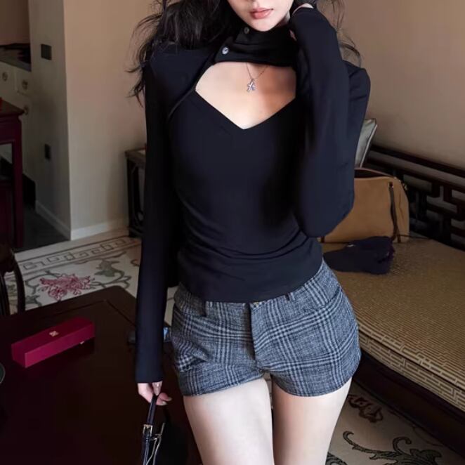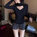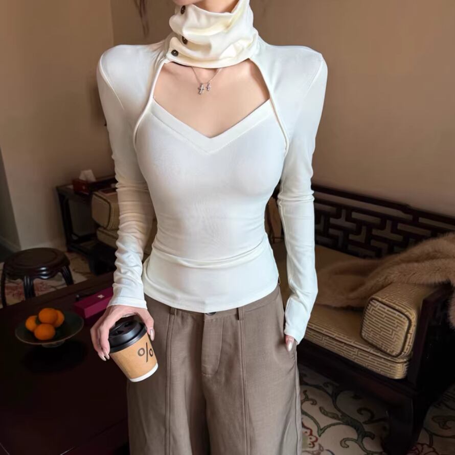 レースカラーアシメボタンドッキングトップス ・71106