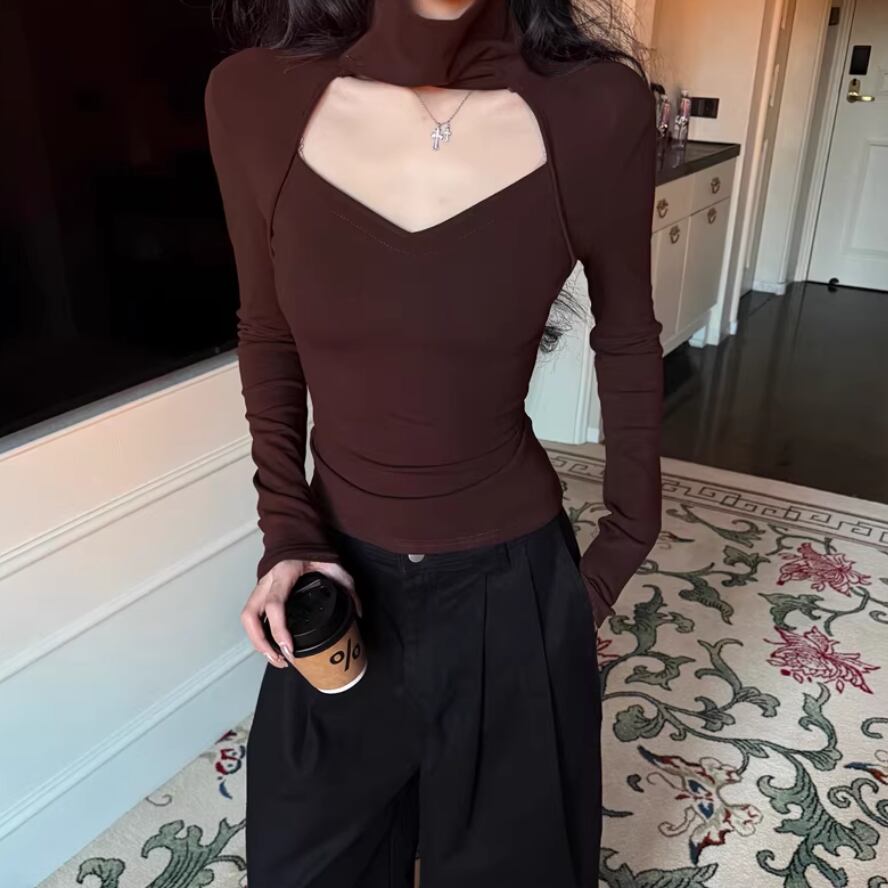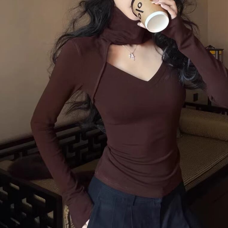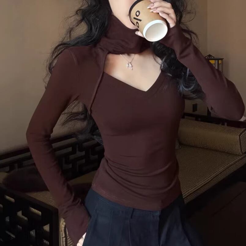 2色/フェイクレイヤードフーデッドニットトップス ・75335