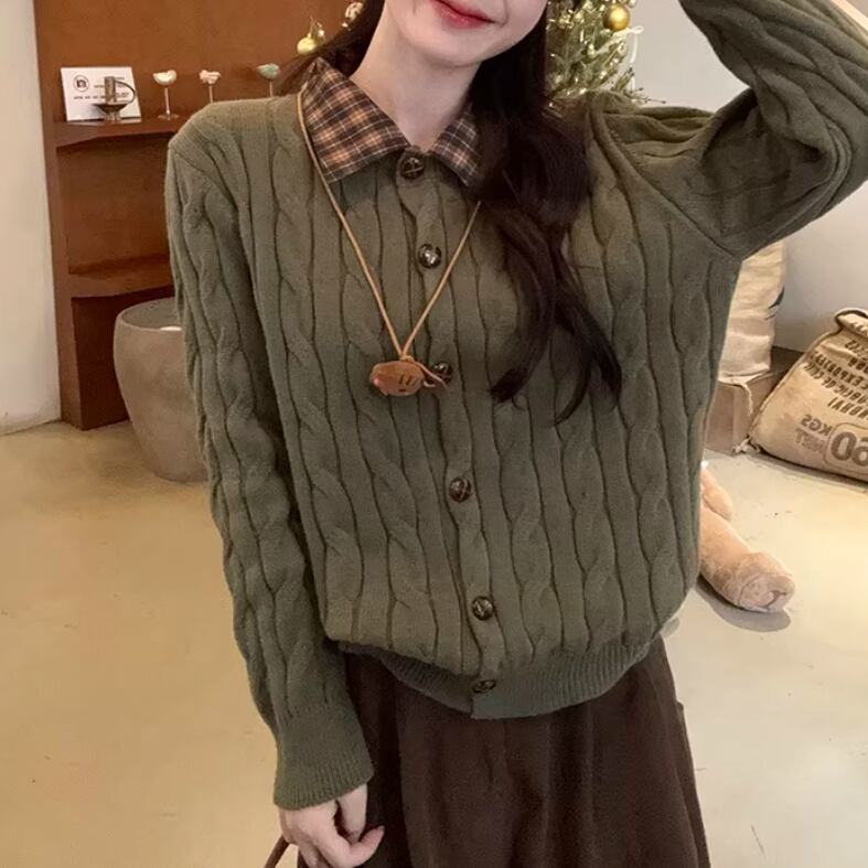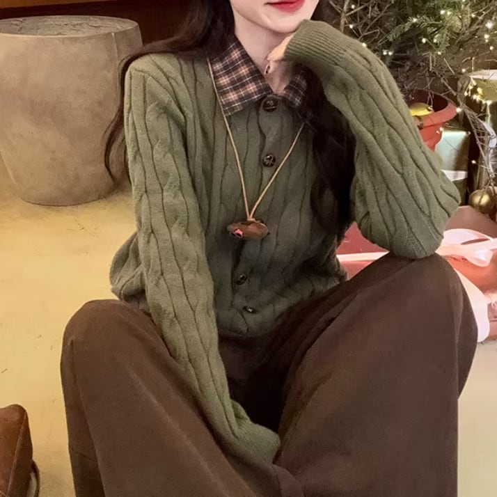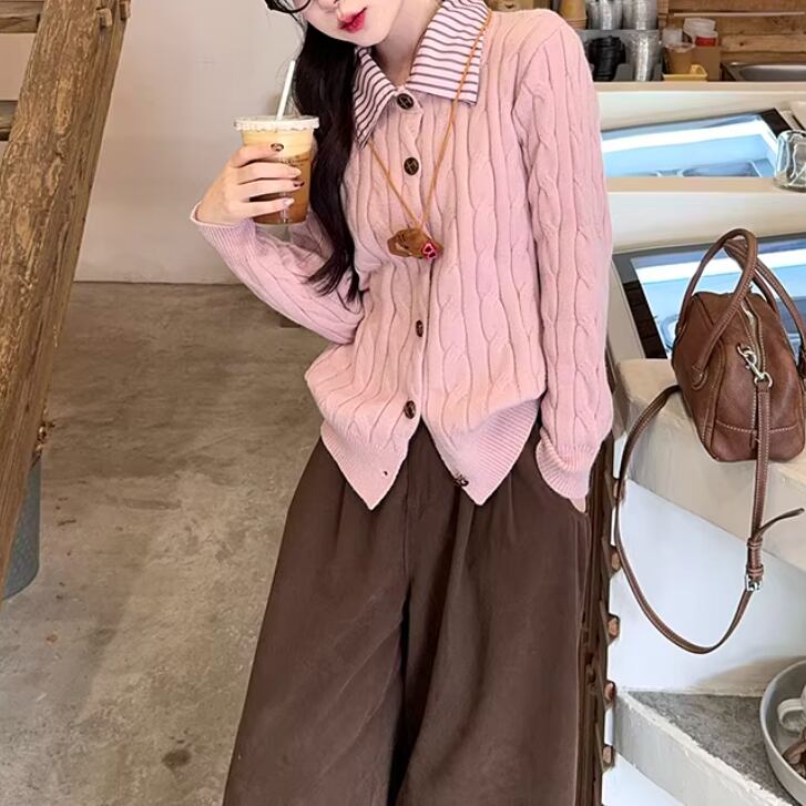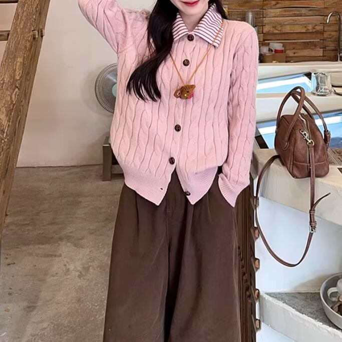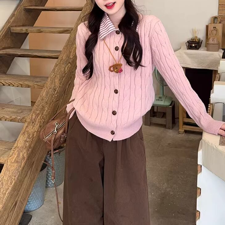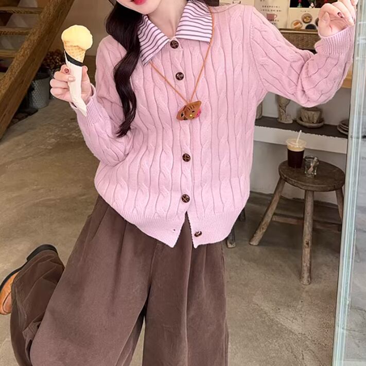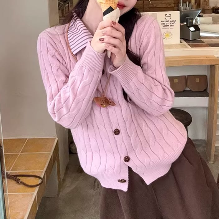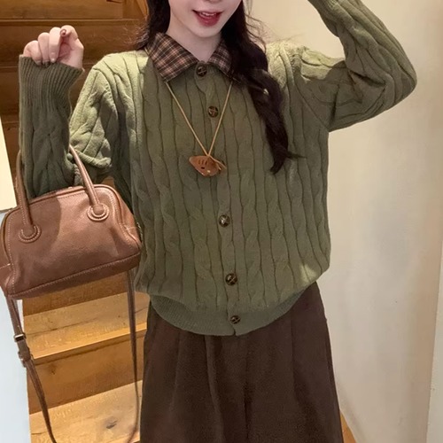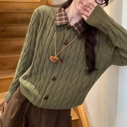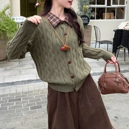 2色/ノルディック柄ポロカラーニットカーデ ・72764